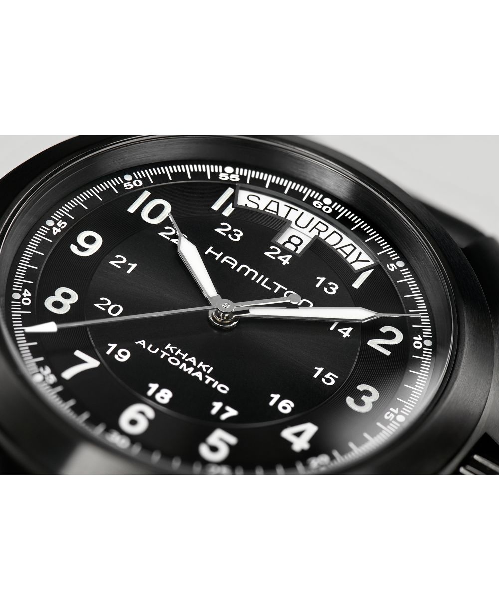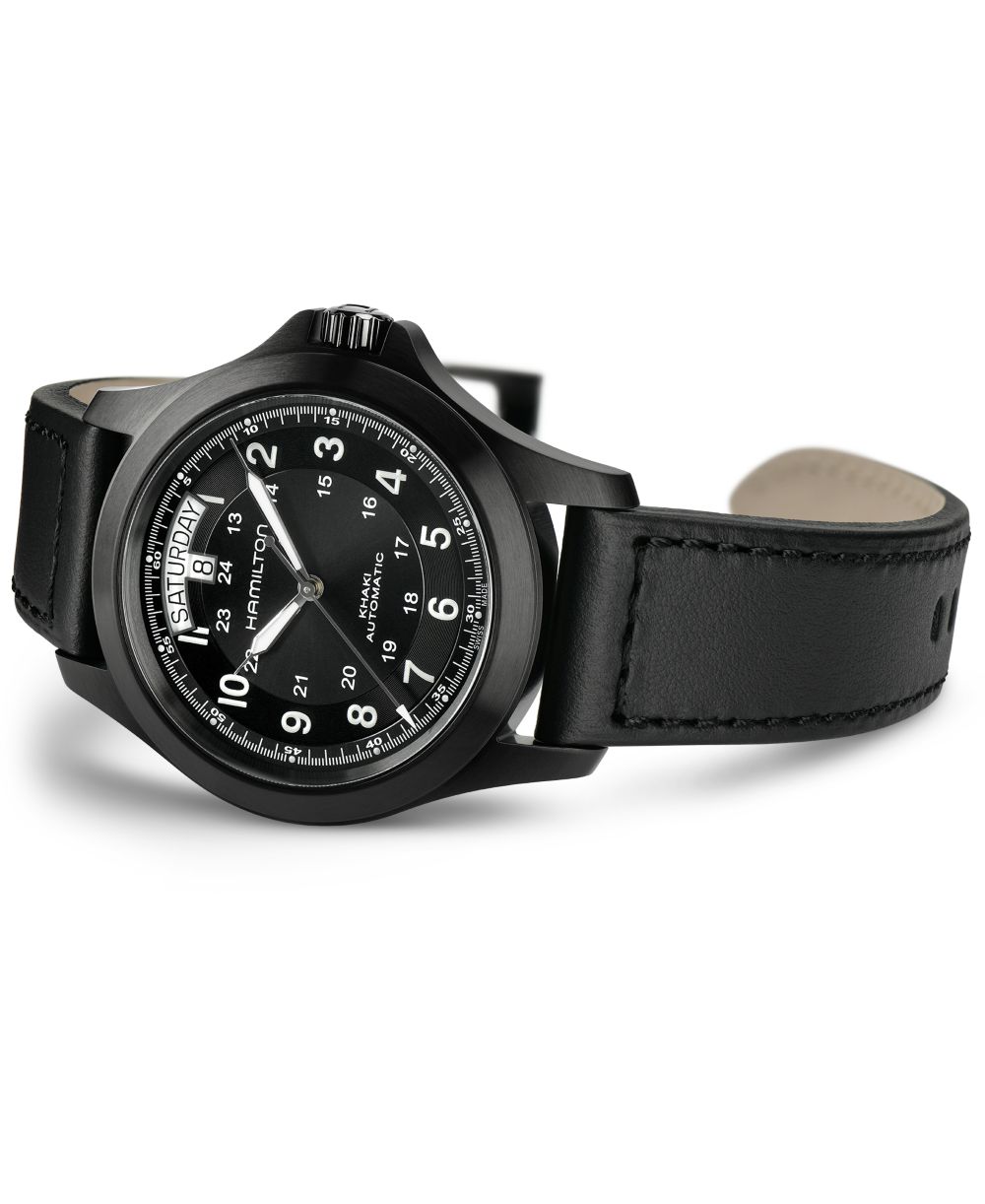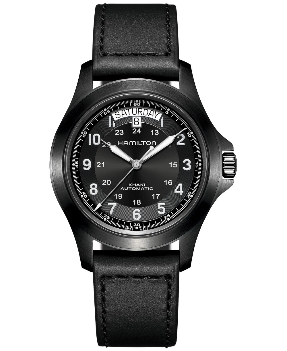 Hamilton Mens Swiss Automatic Khaki Field King Black Leather Strap Watch 40mm