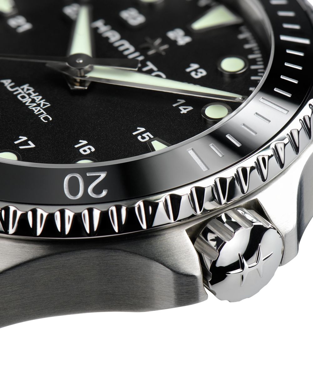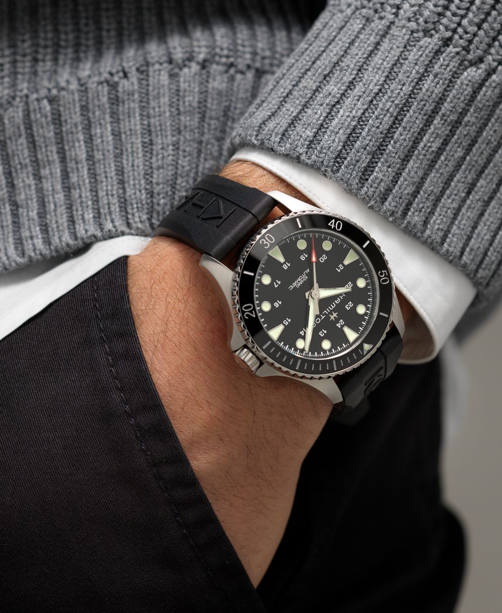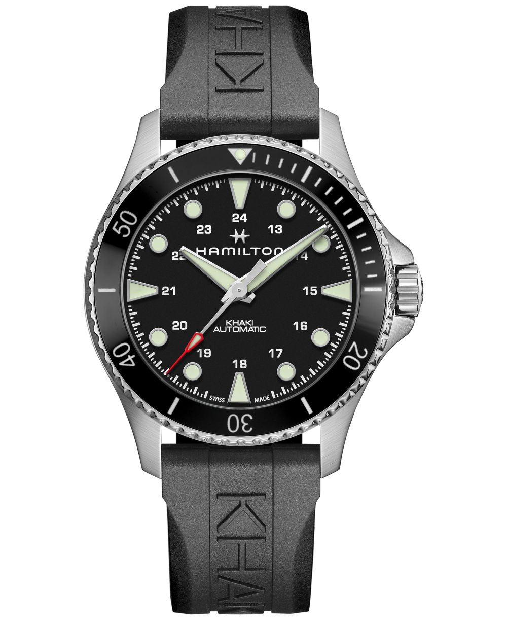 Hamilton Mens Swiss Automatic Khaki Navy Scuba Black Rubber Strap Watch 43mm