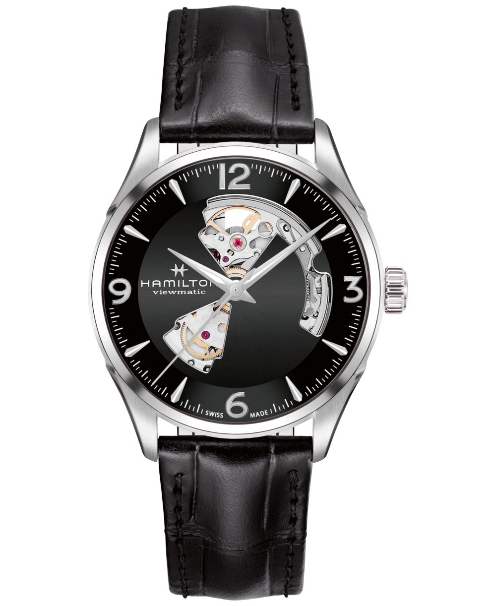Hamilton Mens Swiss Automatic Jazzmaster Black Leather Strap Watch 40mm
