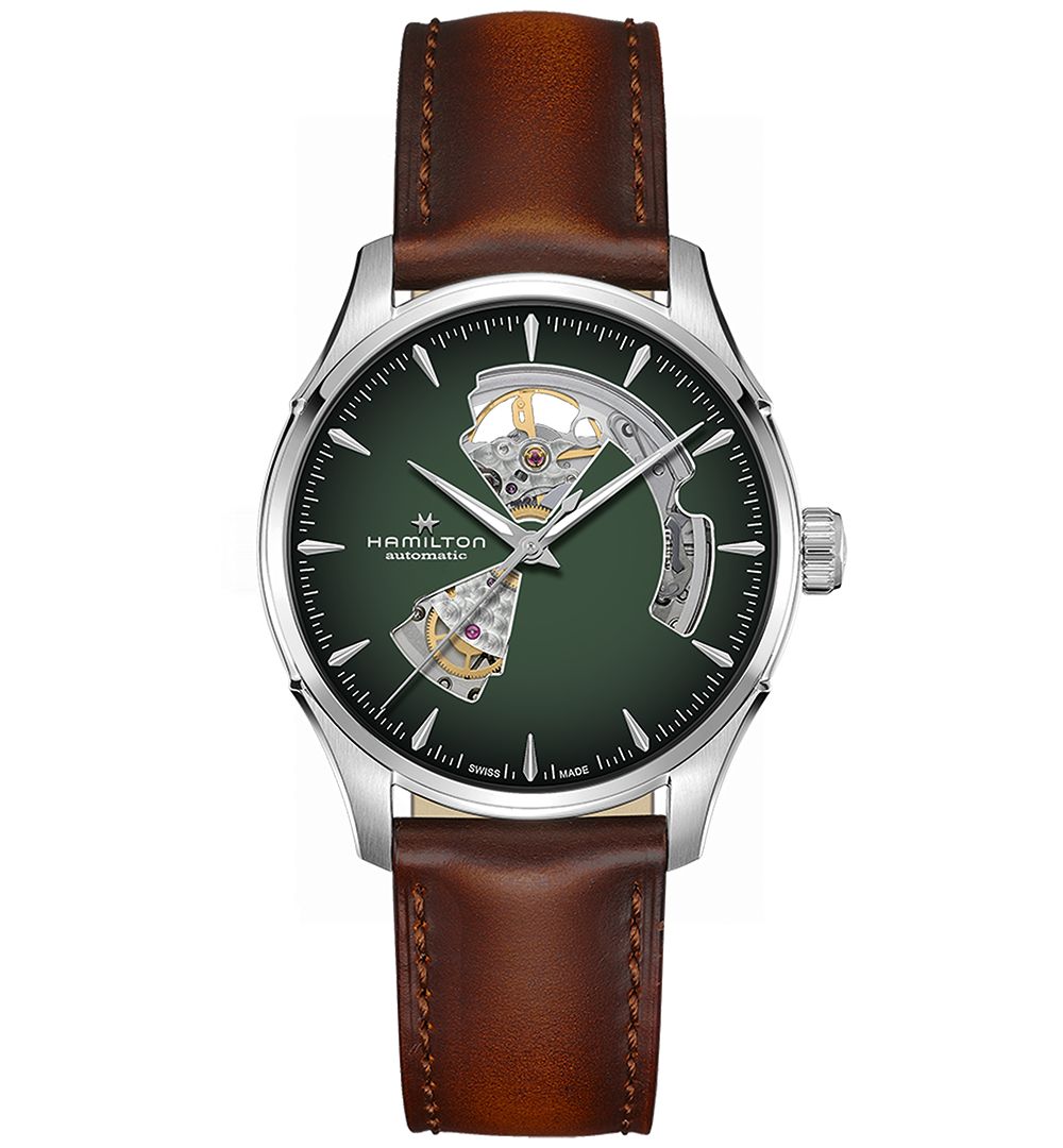 Hamilton Mens Automatic Jazzmaster Open Heart Smoked Green Stainless Steel Strap Watch 40mm