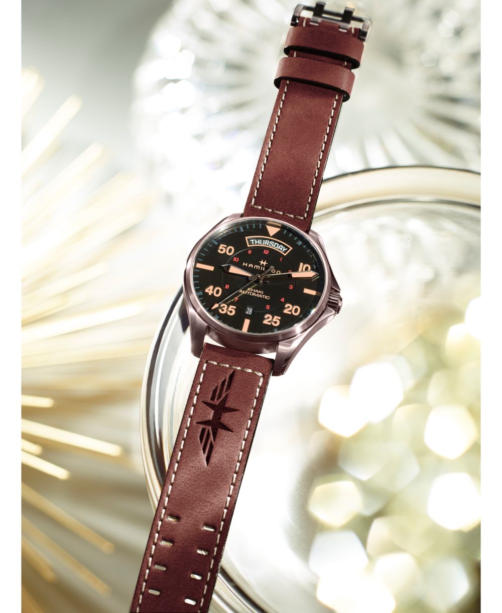 Hamilton Mens Swiss Automatic Khaki Pilot Brown Leather Strap Watch 42mm
