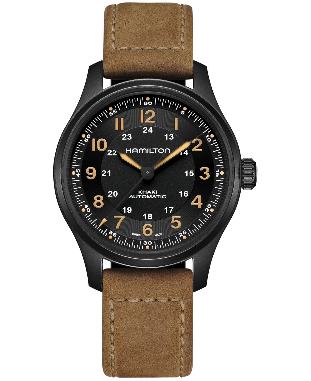 Hamilton Mens Swiss Automatic Khaki Field Brown Leather Strap Watch 42mm