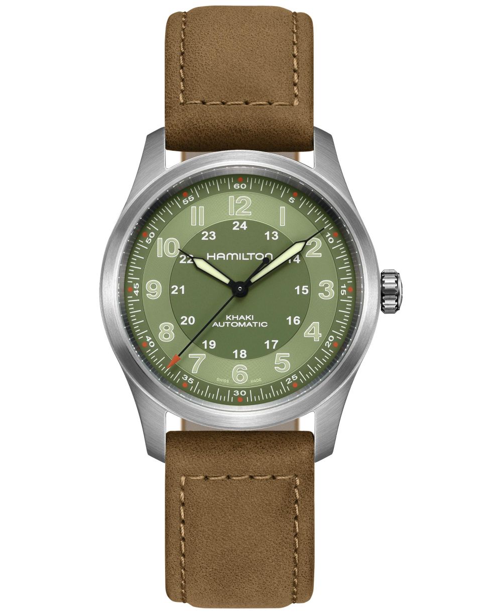 Hamilton Mens Swiss Automatic Khaki Field Brown Leather Strap Watch 38mm