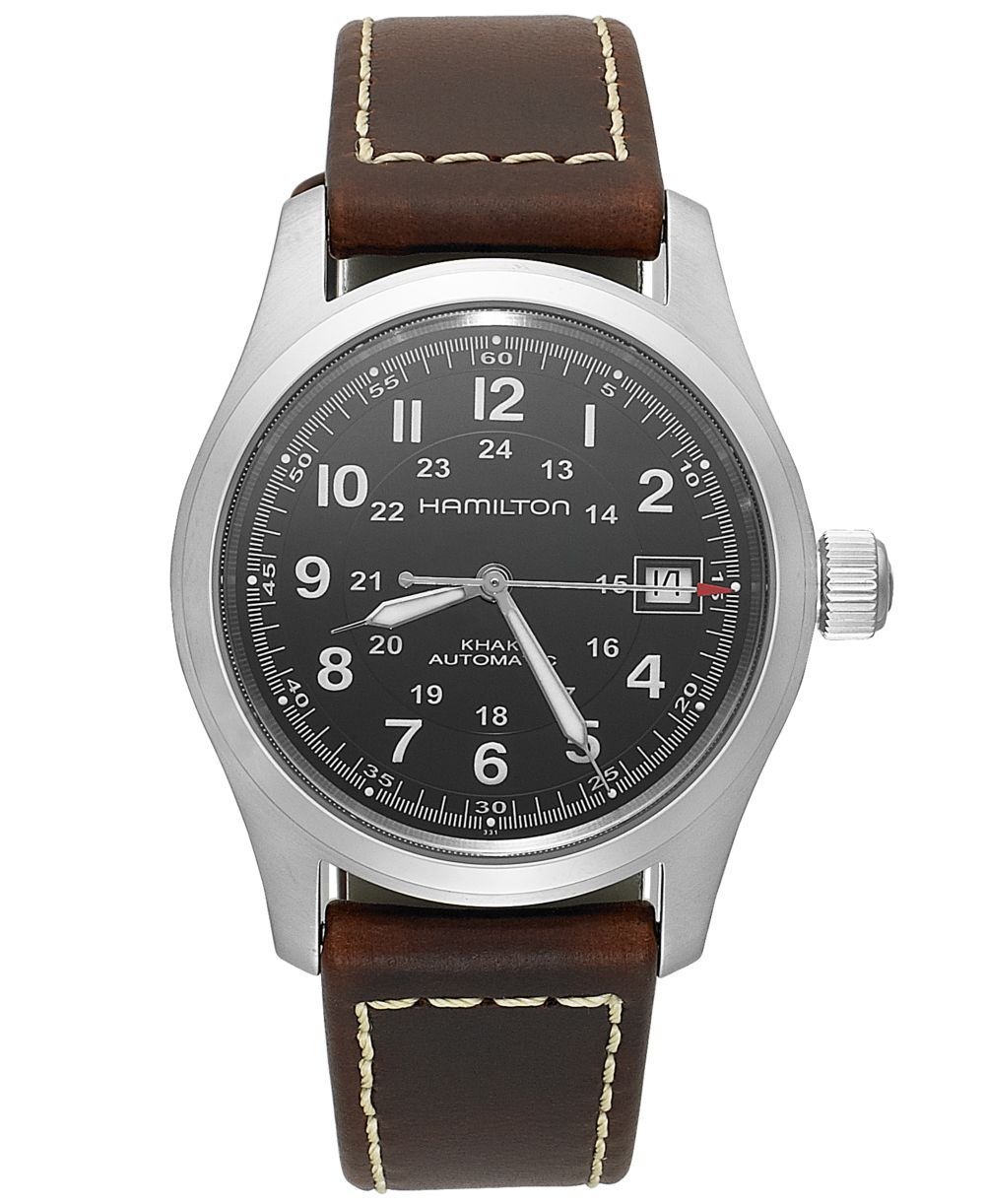 Hamilton Mens Swiss Automatic Khaki Field Brown Leather Strap Watch 38mm H70455533
