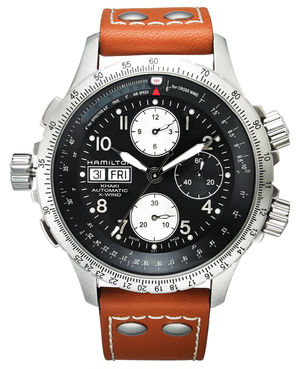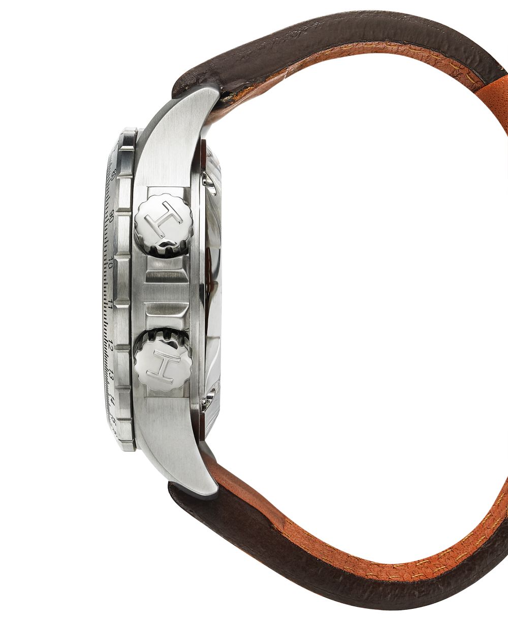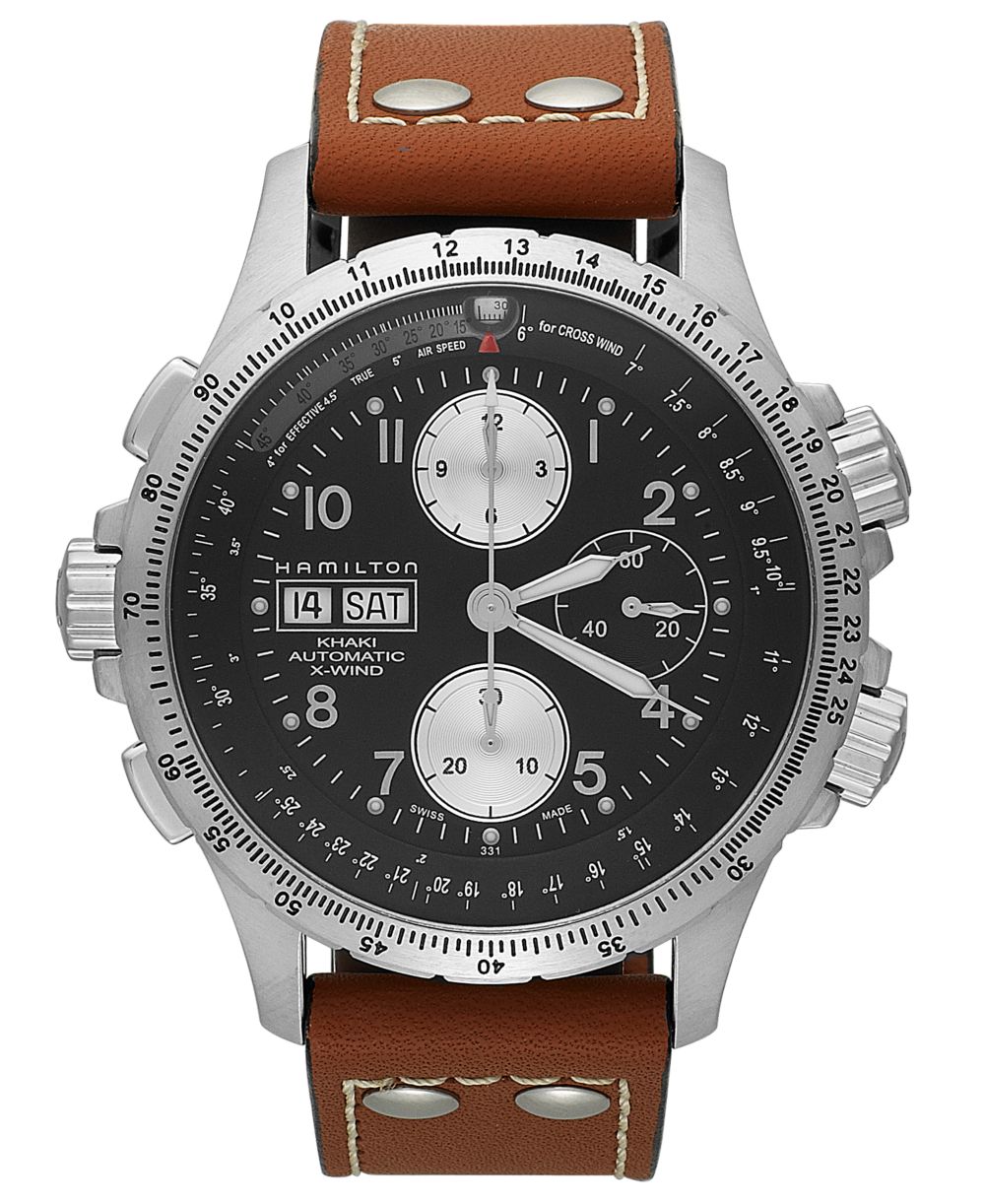 Hamilton Watch Mens Swiss Automatic Chronograph Khaki X Wind Brown Leather Strap 44mm H77616533