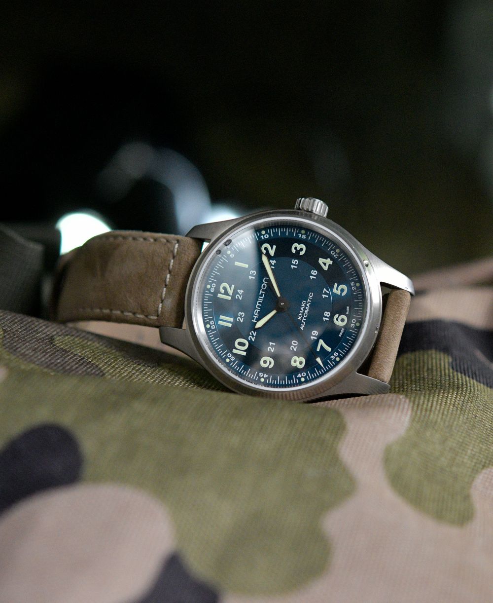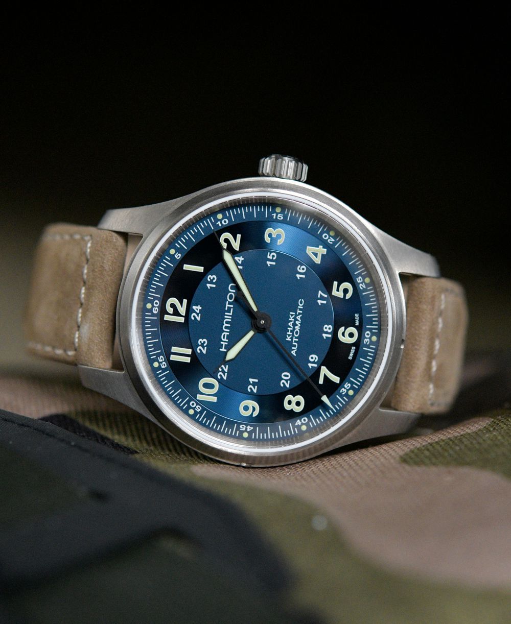 Hamilton Mens Swiss Automatic Khaki Field Brown Leather Strap Watch 42mm