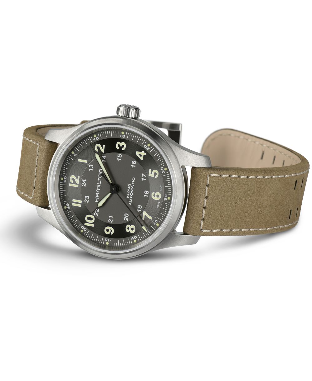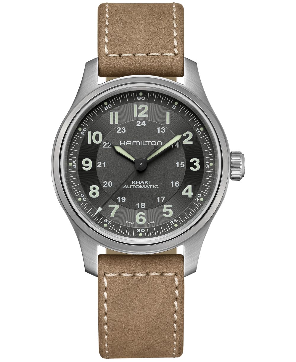 Hamilton Mens Swiss Automatic Khaki Field Brown Leather Strap Watch 42mm