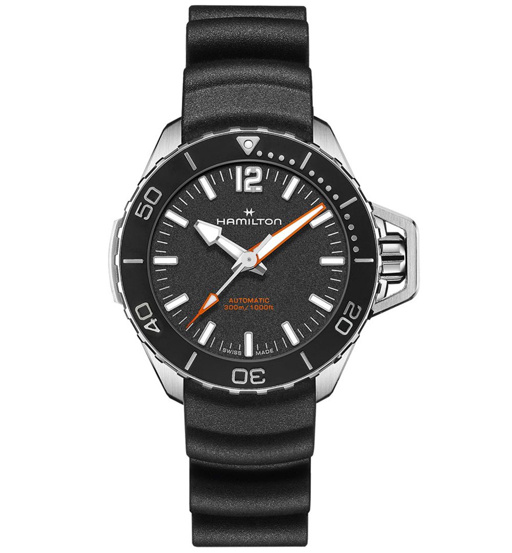 Hamilton Mens Swiss Automatic Khaki Navy Frogman Black Rubber Strap Watch 41mm