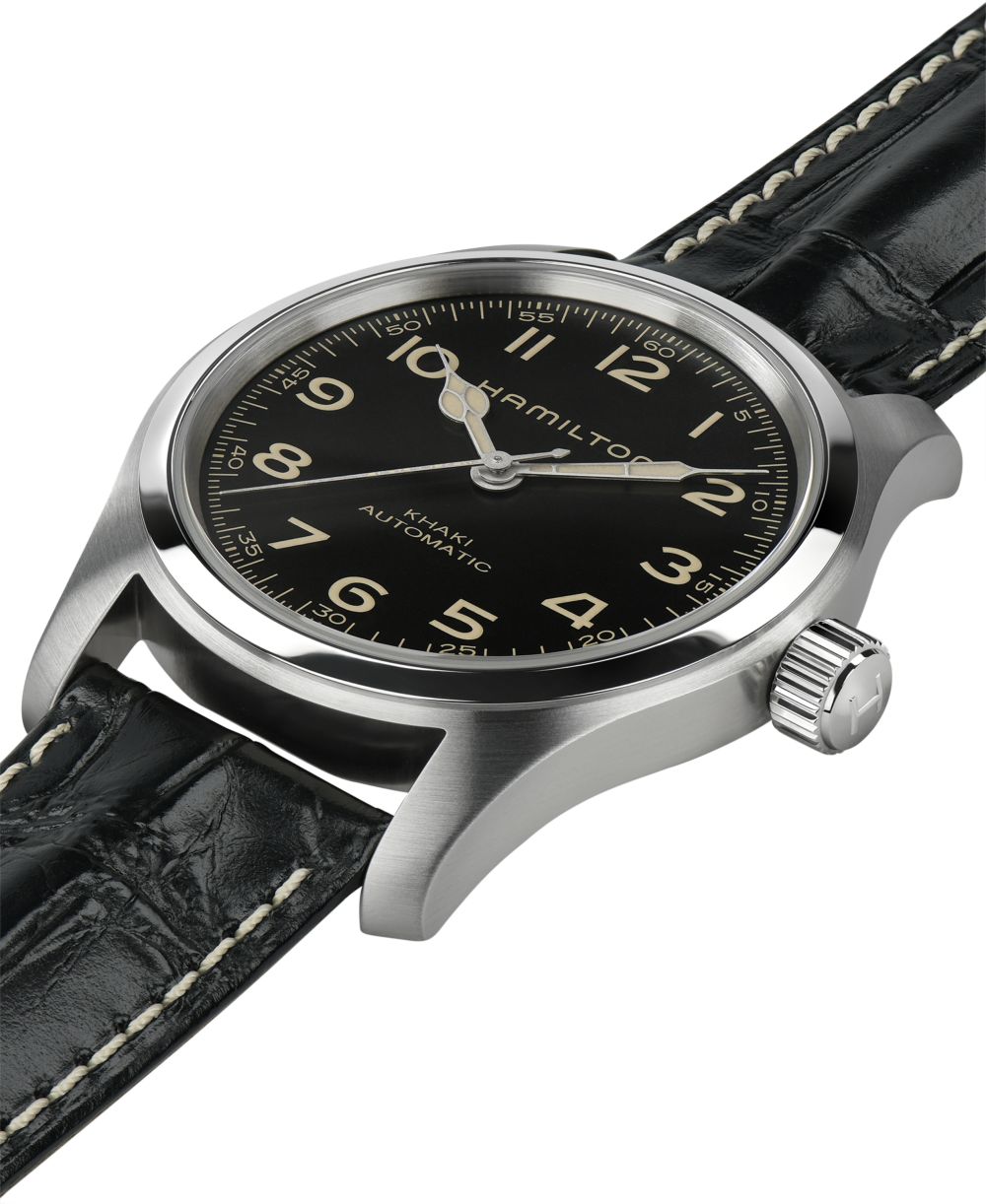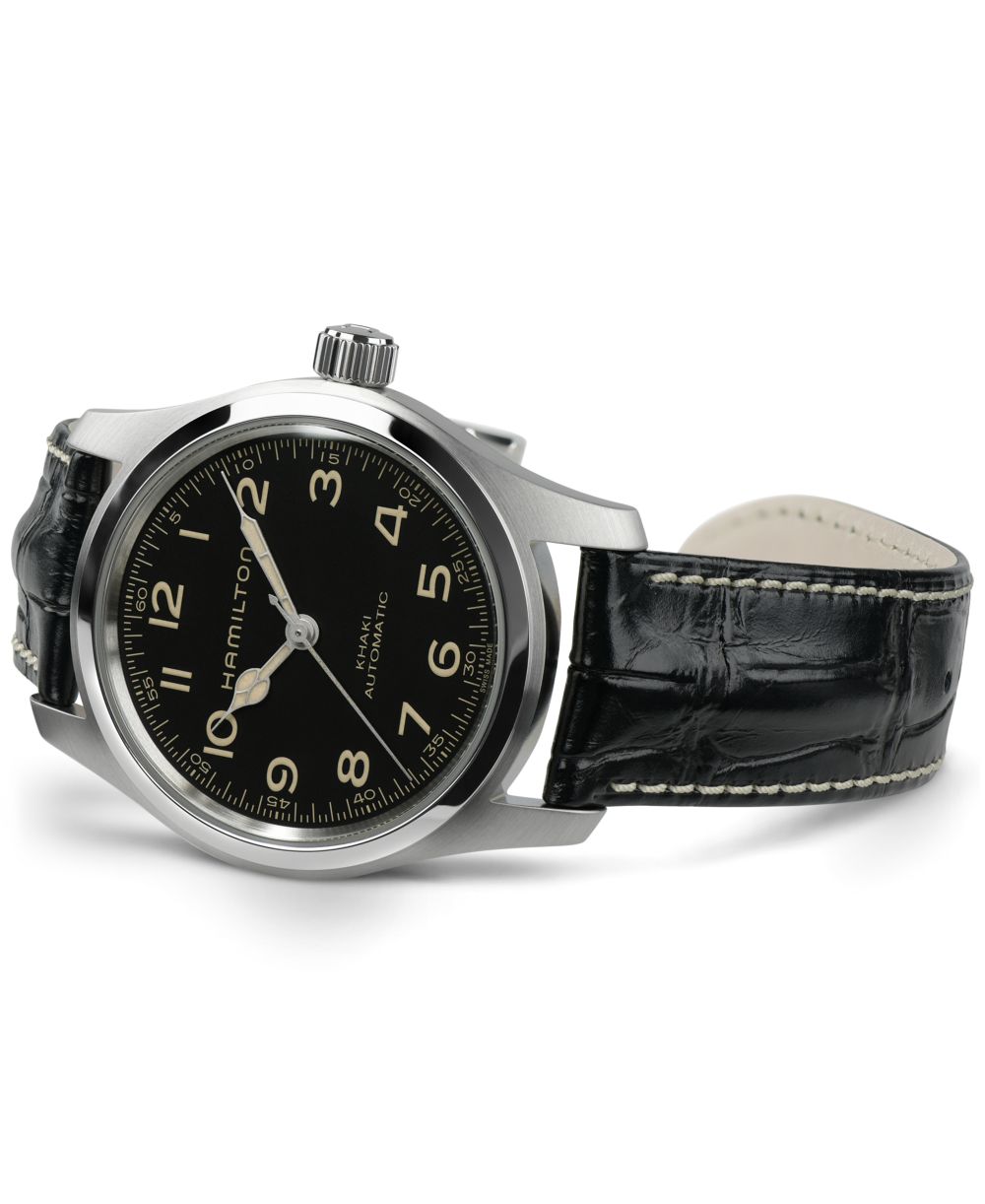 Hamilton Mens Swiss Automatic Khaki Field Murph Black Leather Strap Watch 42mm