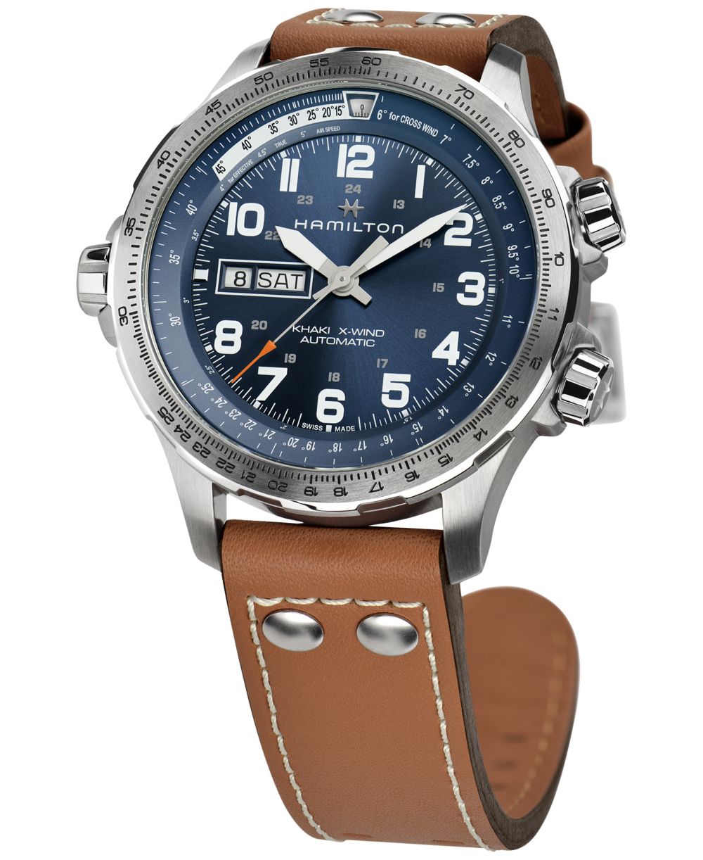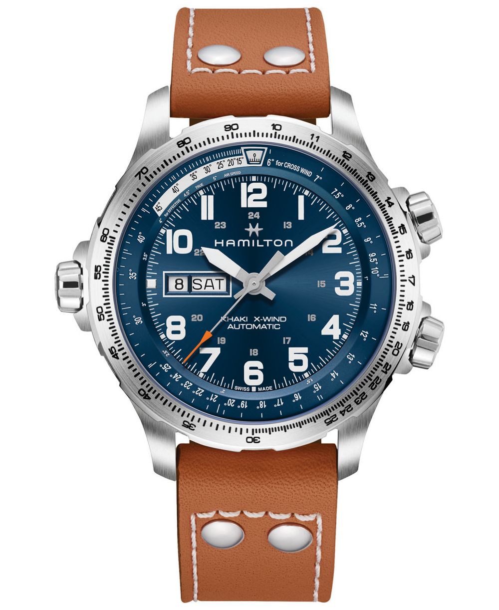 Hamilton Mens Swiss Khaki X Wind Brown Leather Strap Watch 45mm