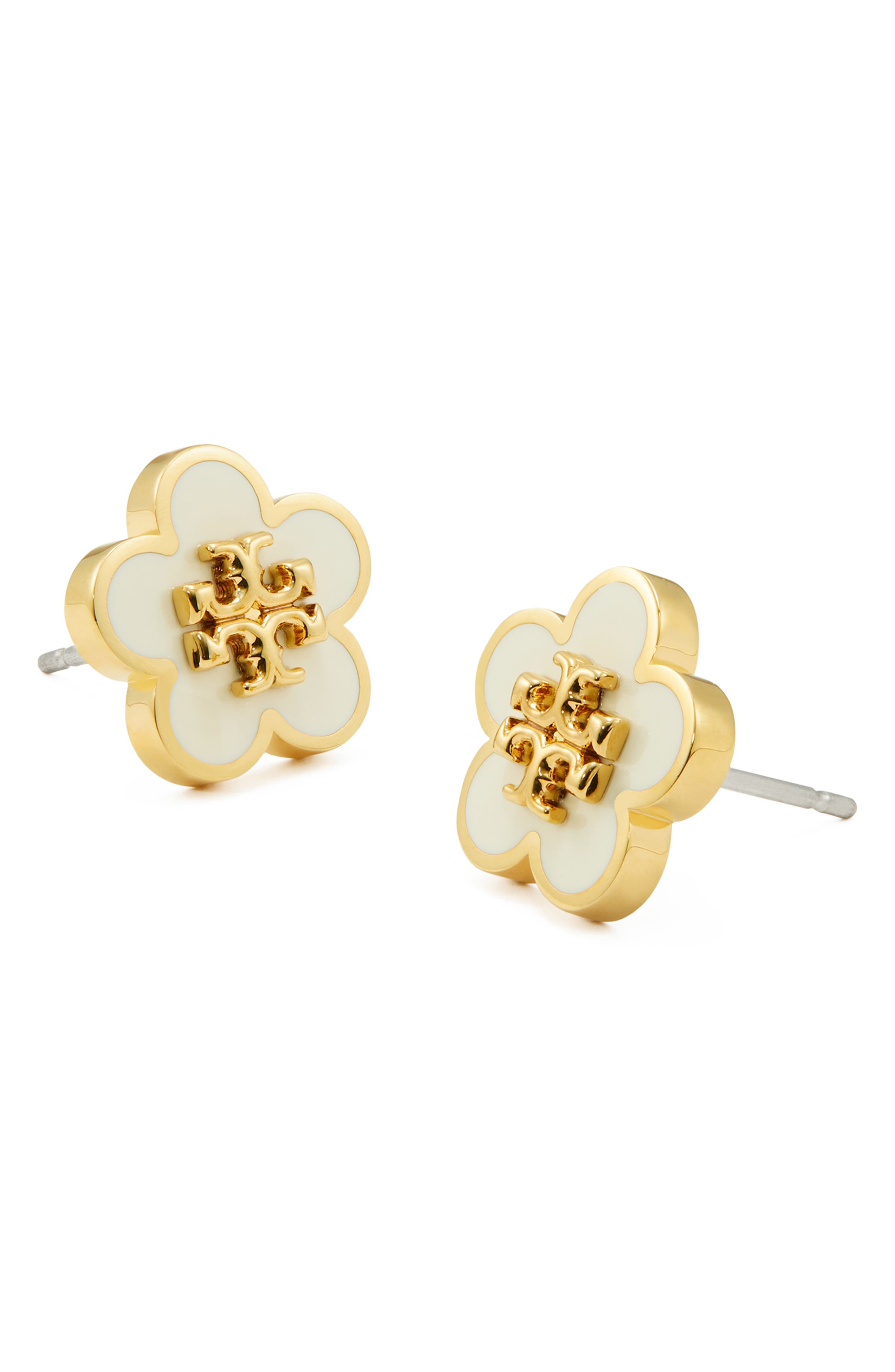 Tory Burch Flower Stud Earrings_Tory Gold / New Ivory