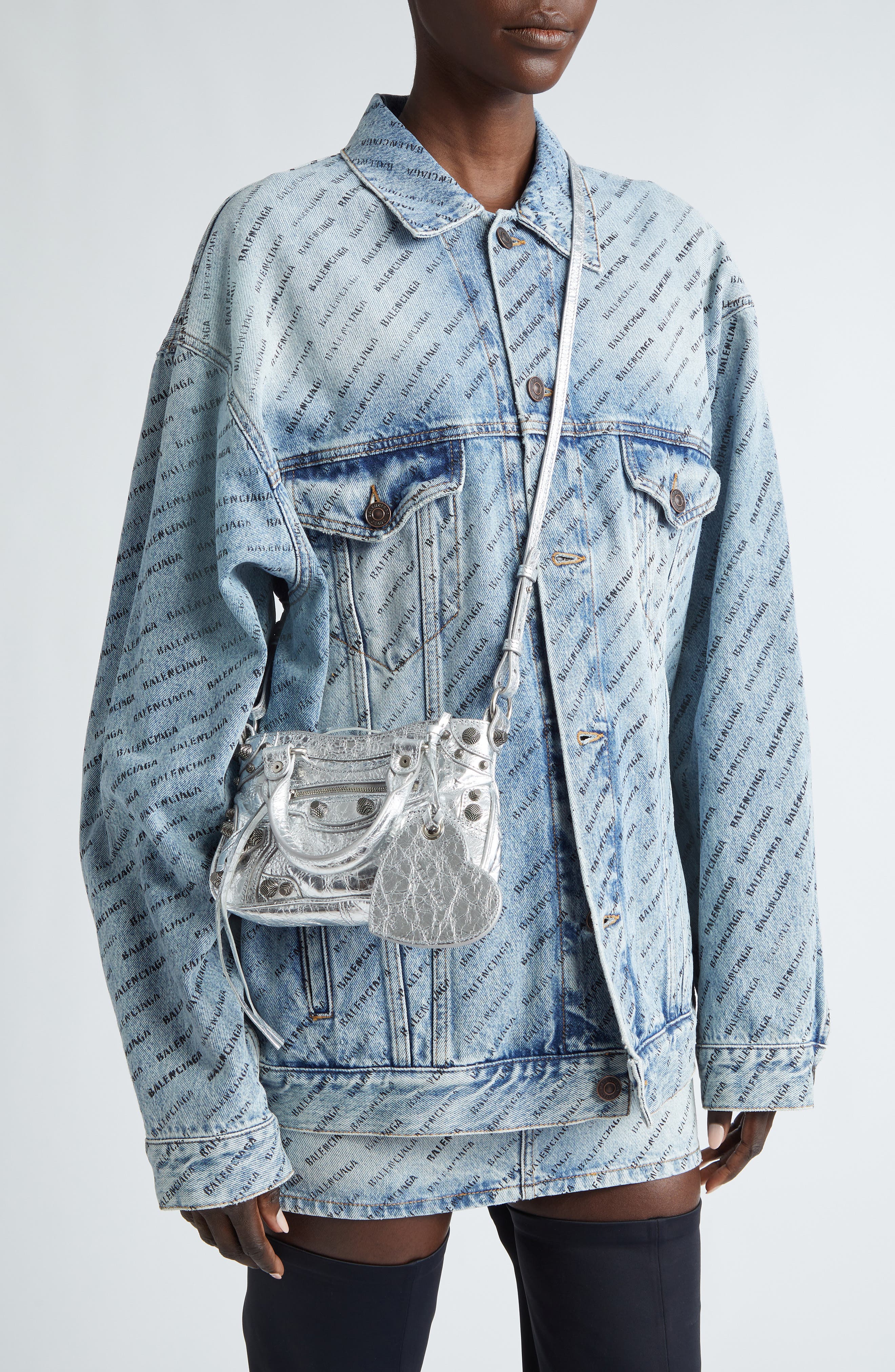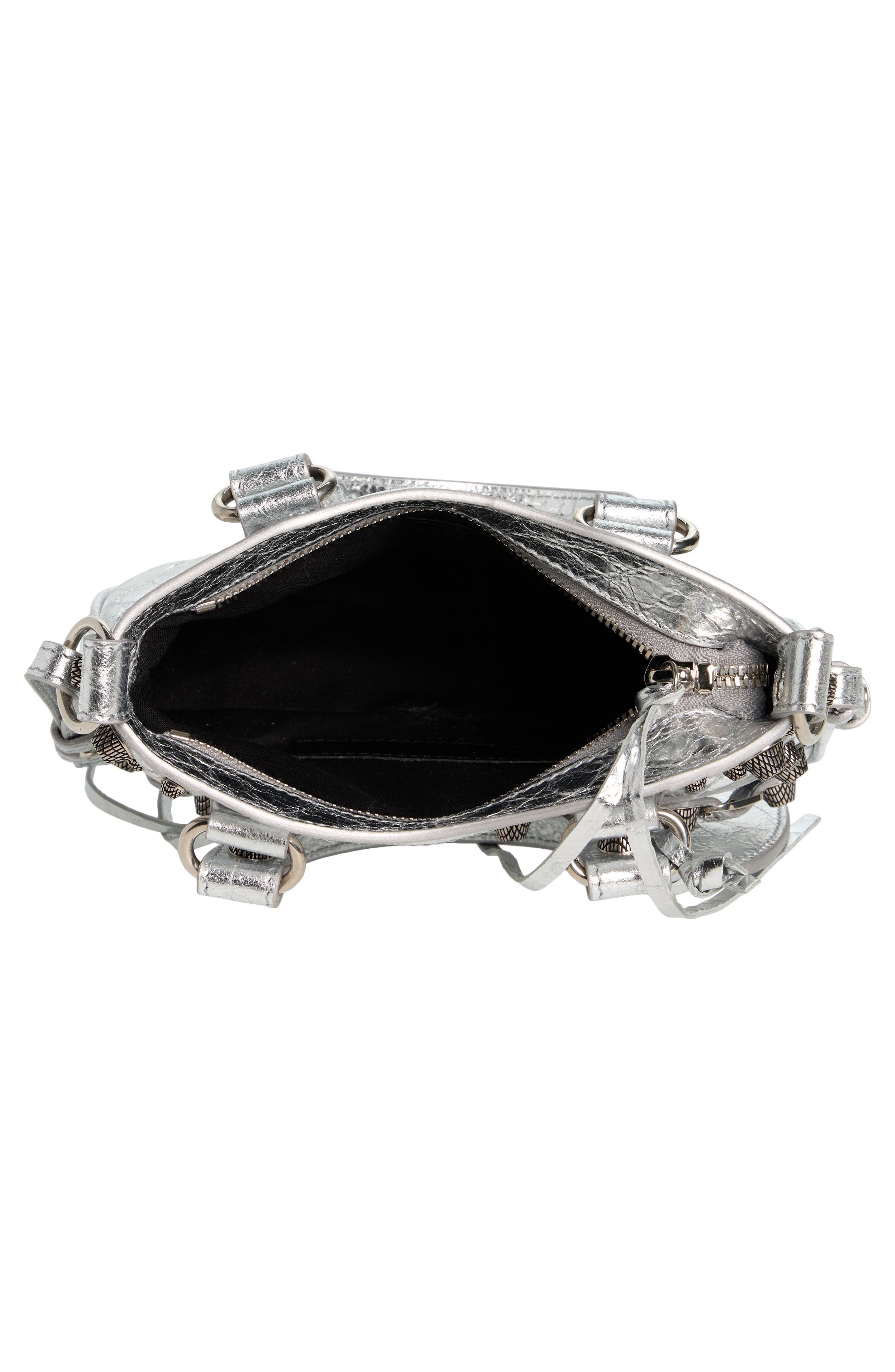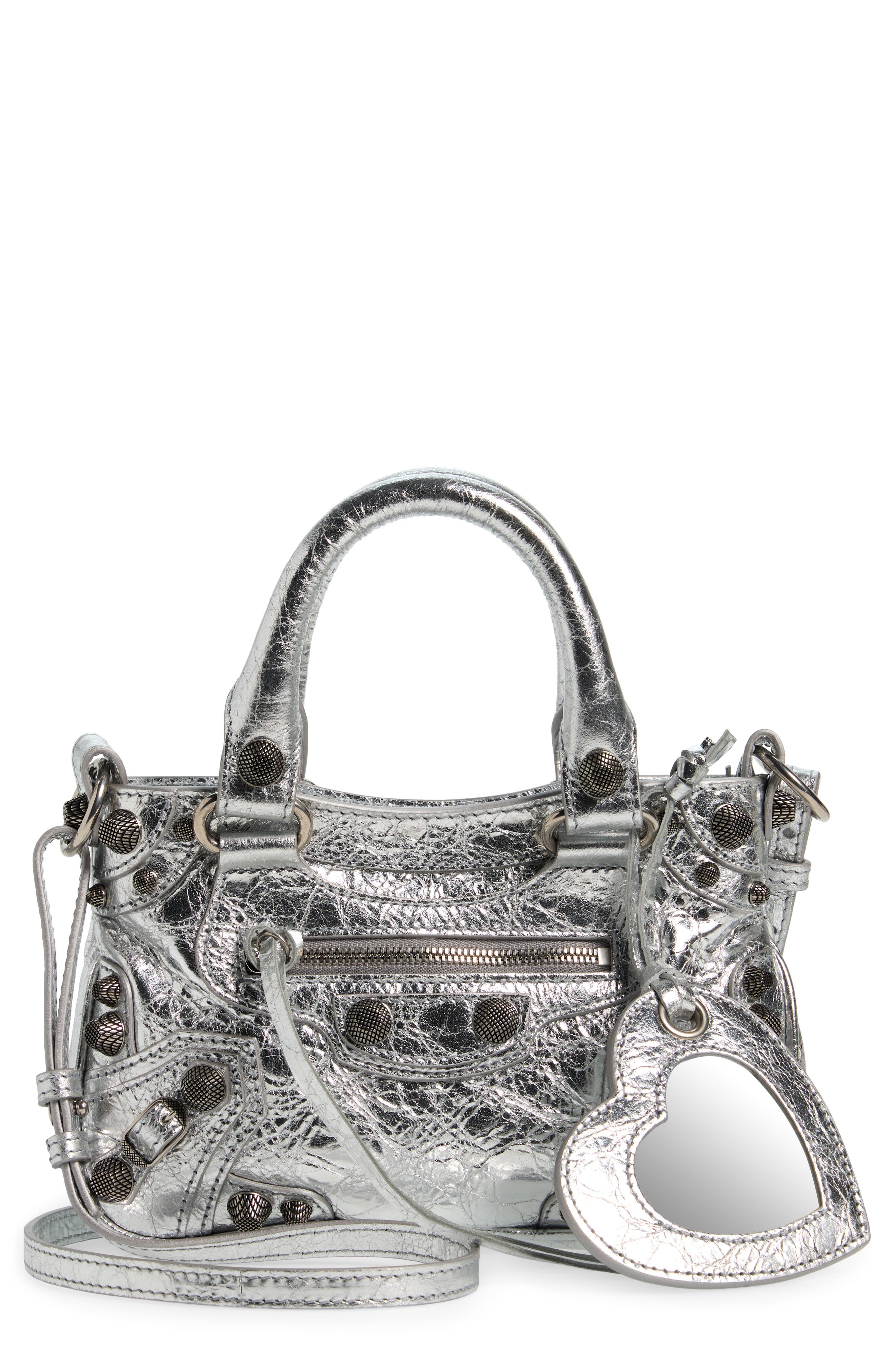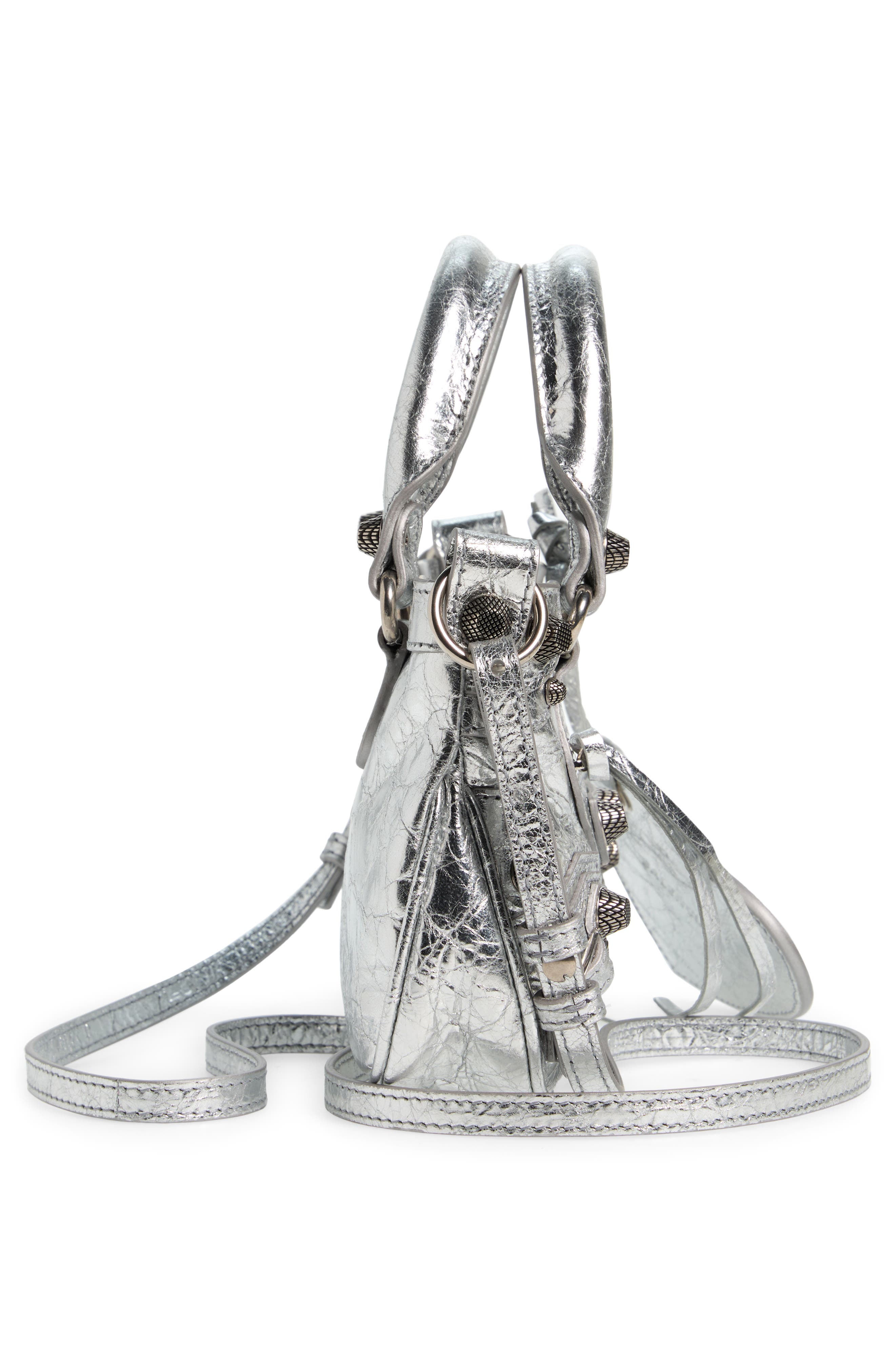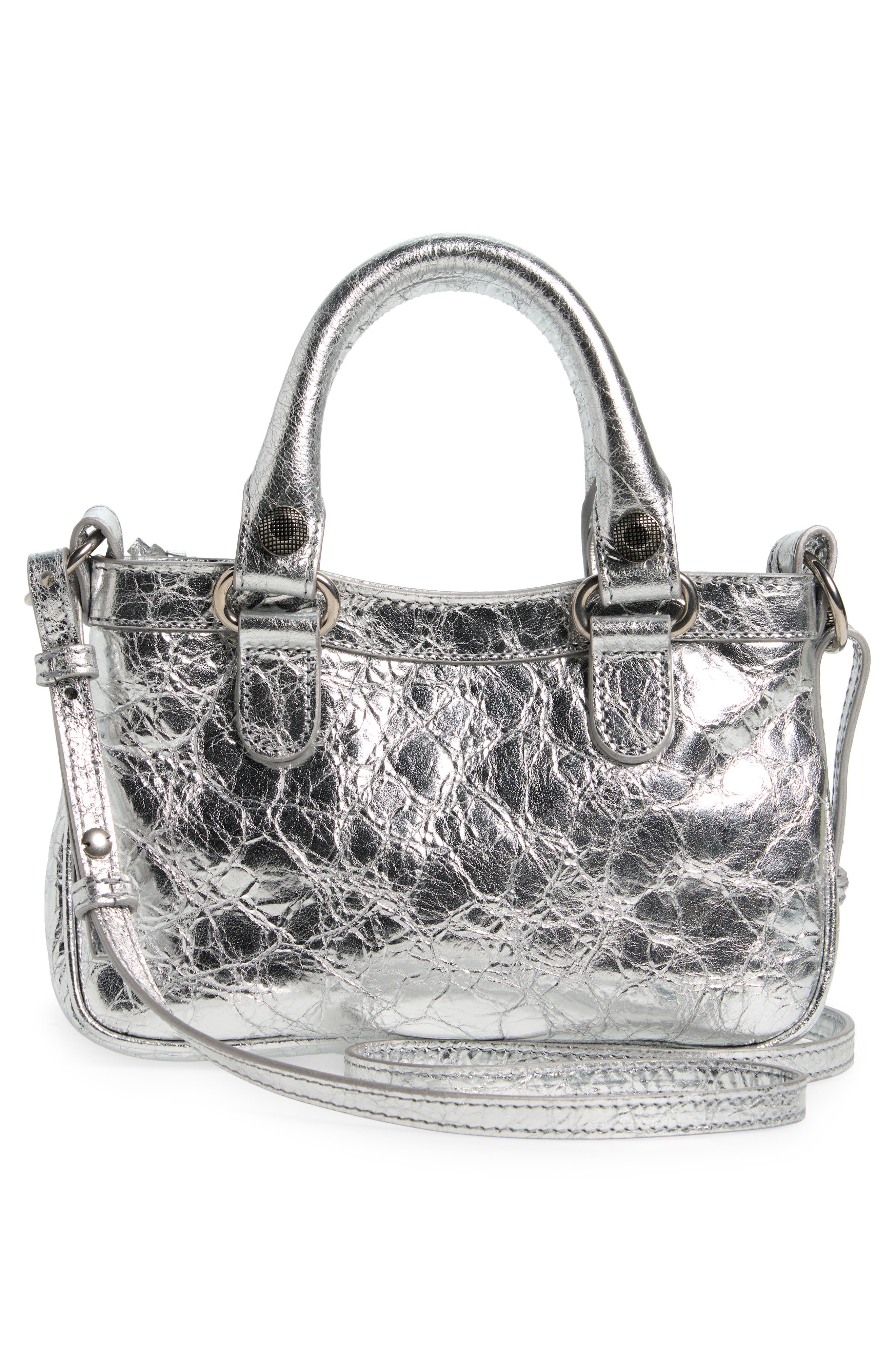 Balenciaga Mini Neo Cagole Metallic Leather Tote_Silver