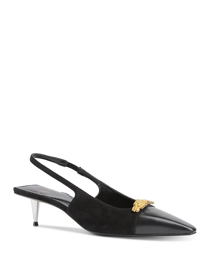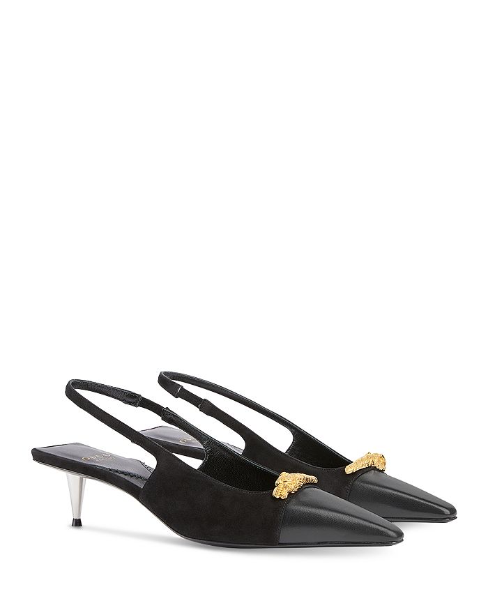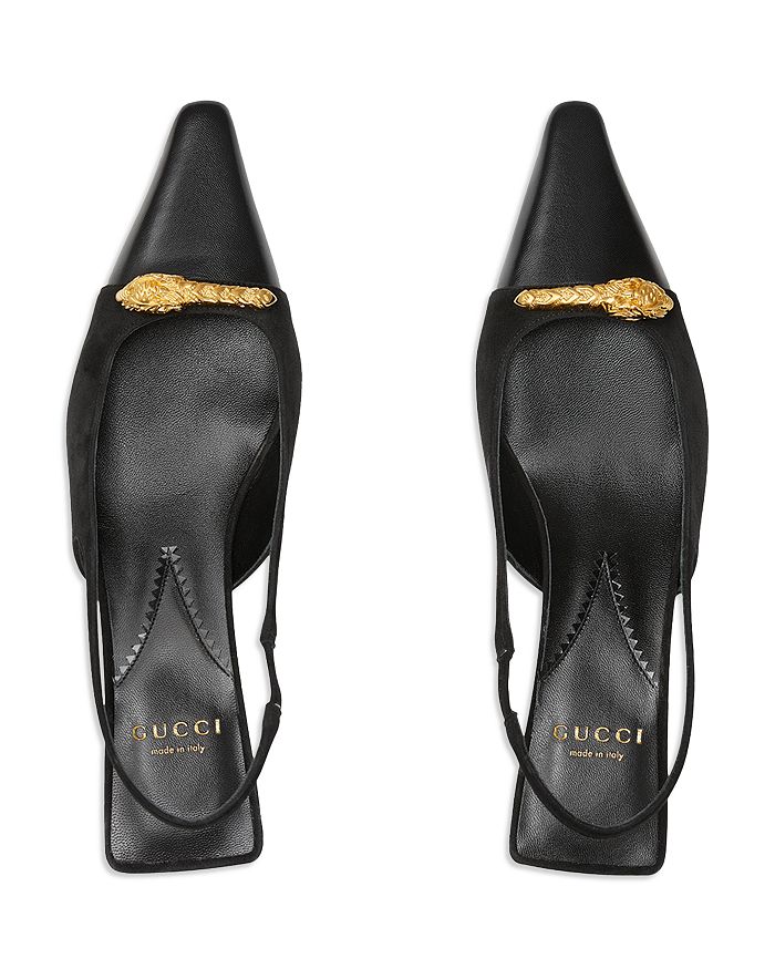 Gucci Womens Tiger Hardware Pointed Toe Slingback Pumps