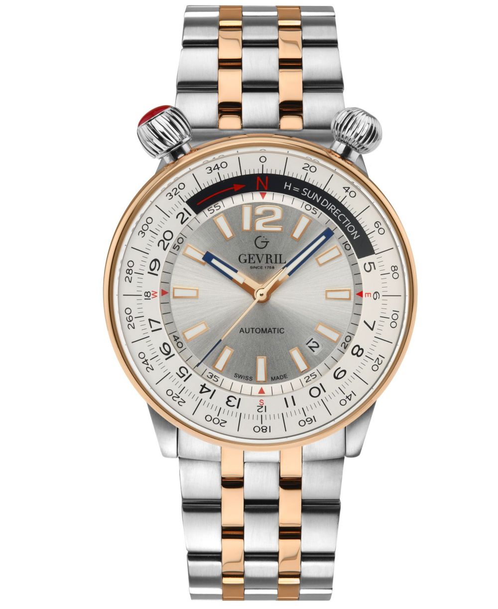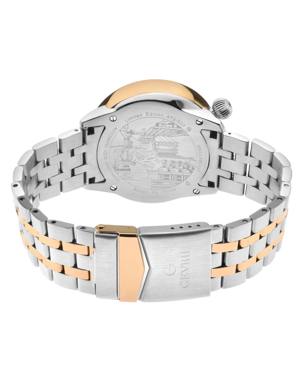 Gevril Mens Wallabout Swiss Automatic Two Tone Stainless Steel Bracelet Watch 44mm