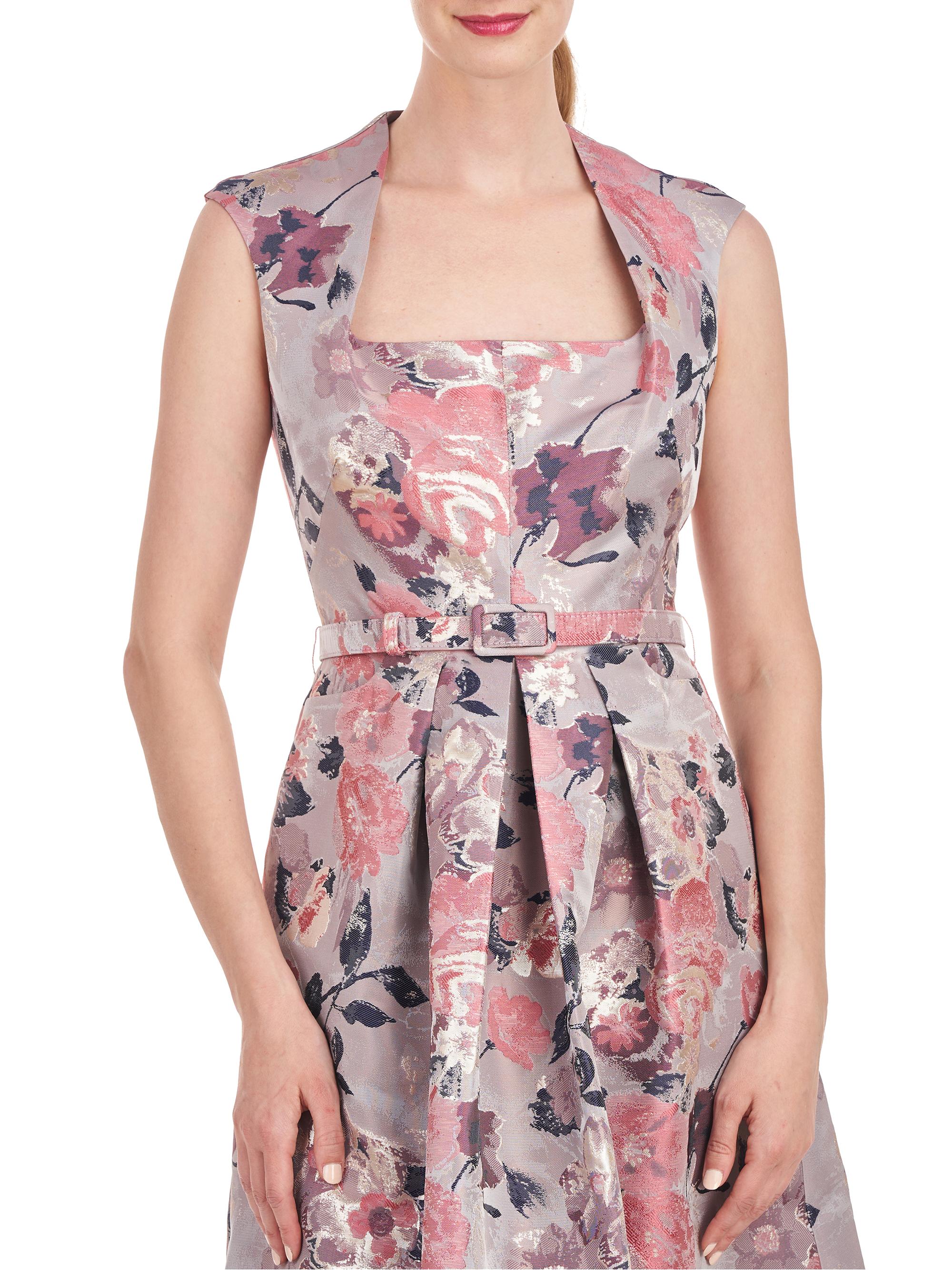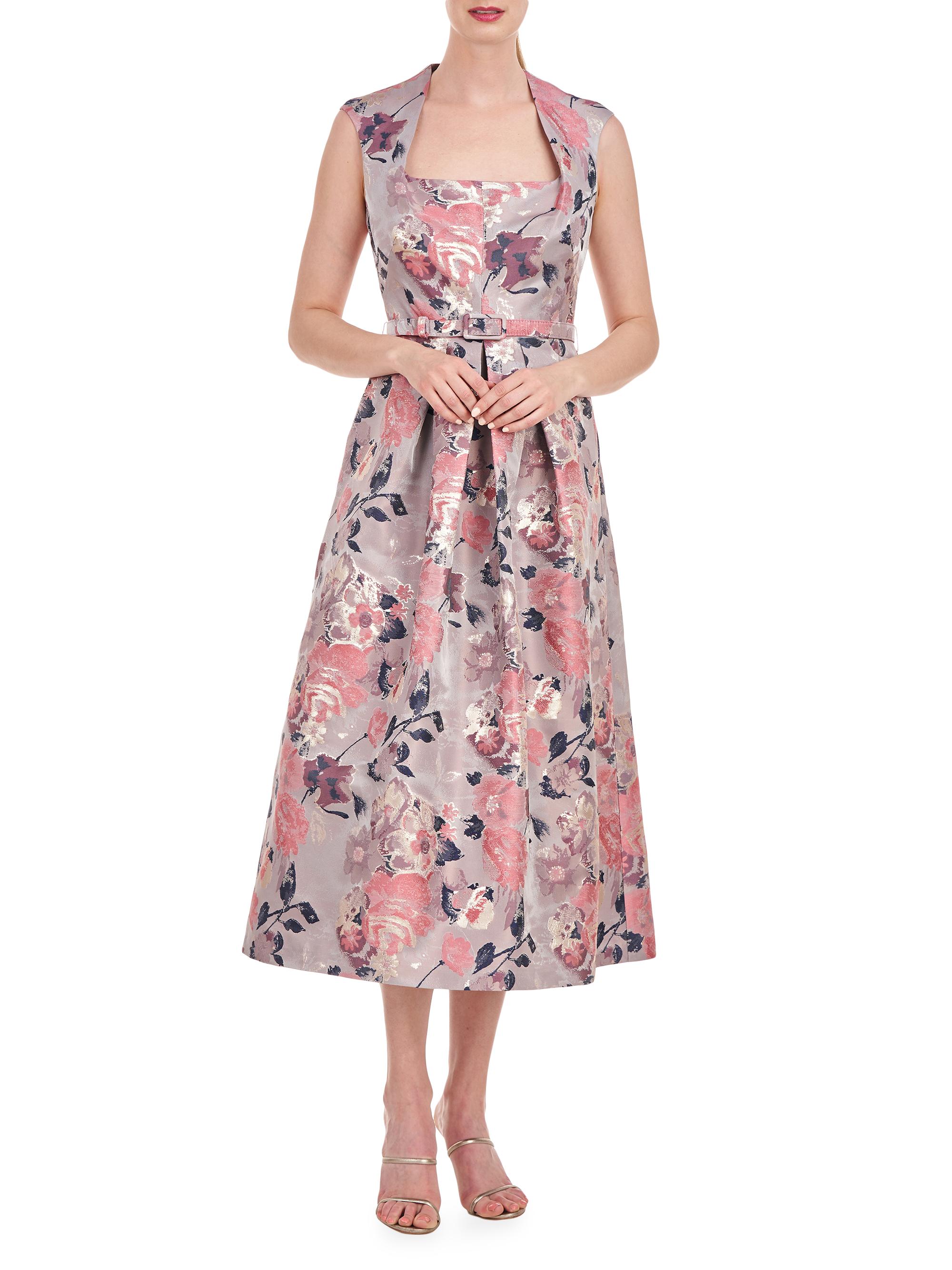 Kay Unger Lizbeth Floral Jacquard Midi-Dress