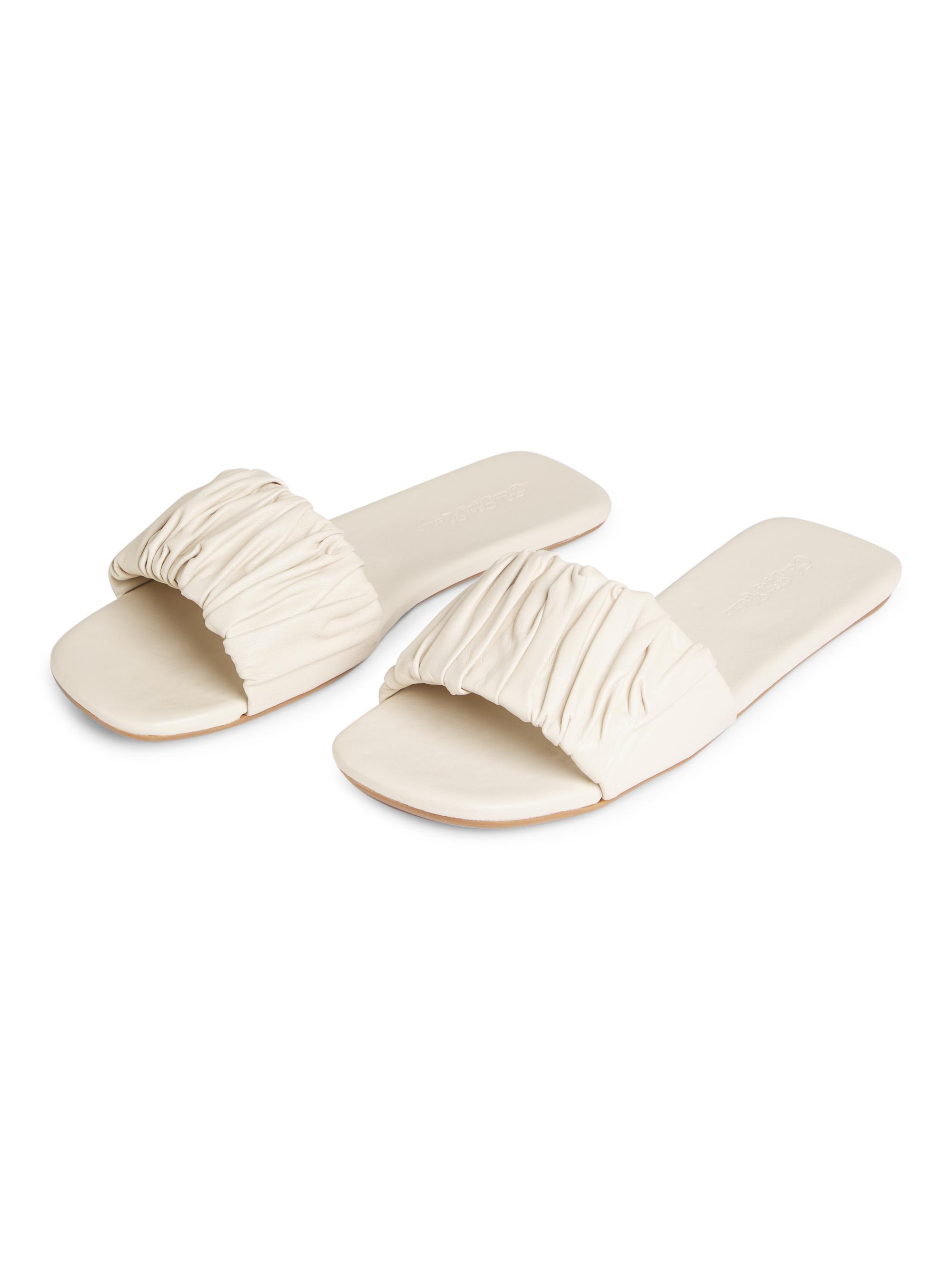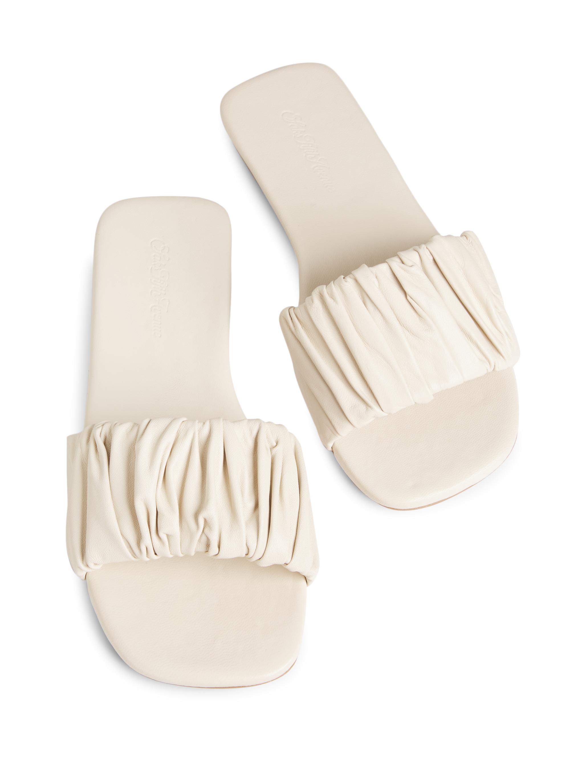 Saks Fifth Avenue COLLECTION Ruched Leather Sandals EGGSHELL