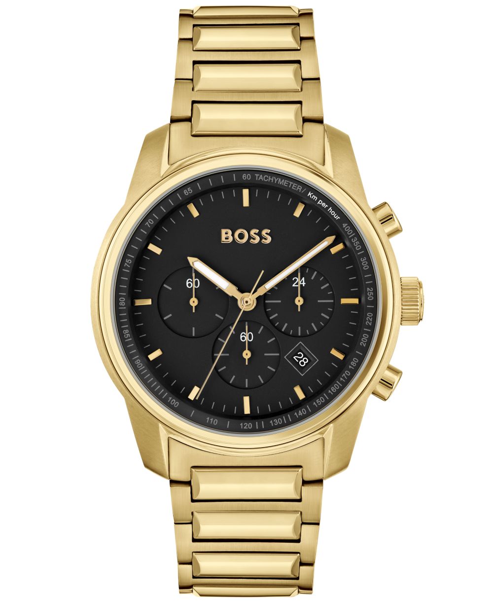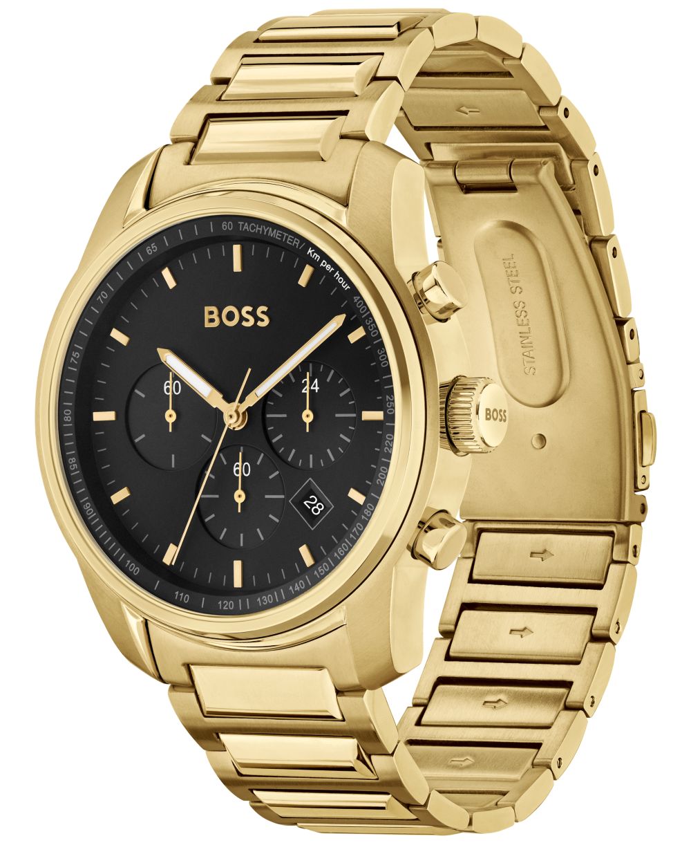 Hugo Boss Mens Trace Ionic Thin Gold Tone 1 Steel Bracelet Watch 44mm