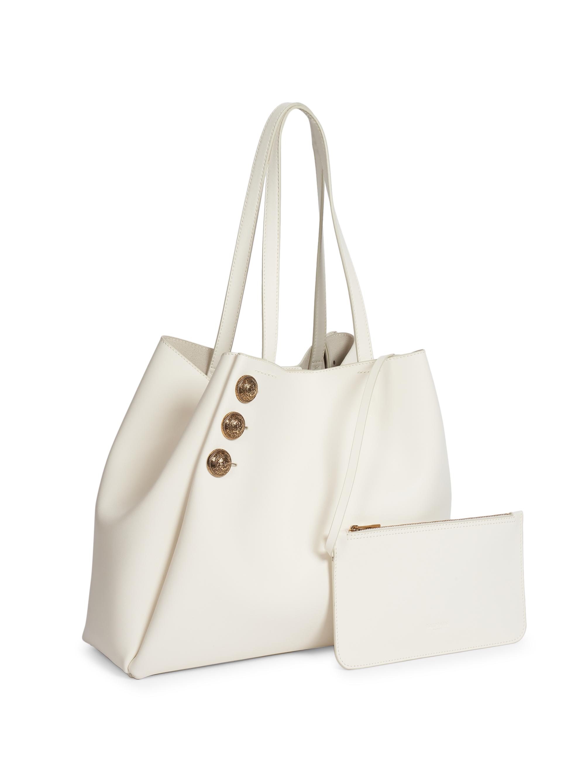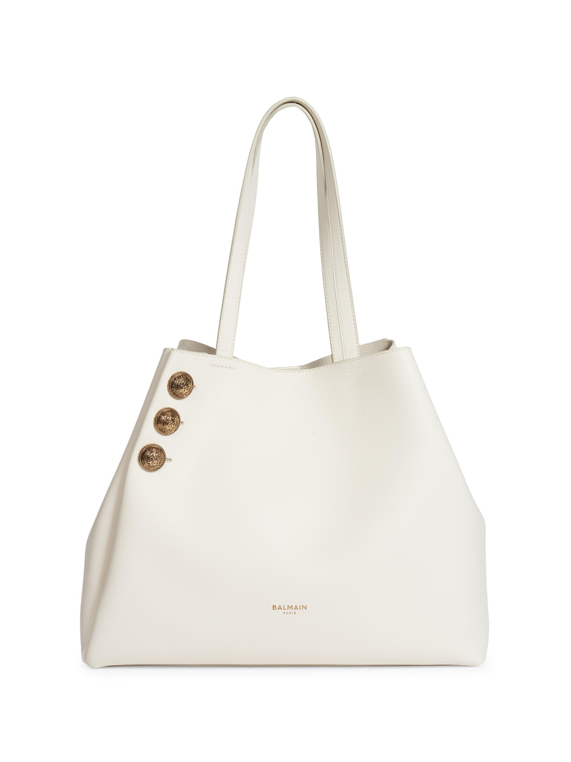 Balmain Embleme Leather Shopping Bag CREAM