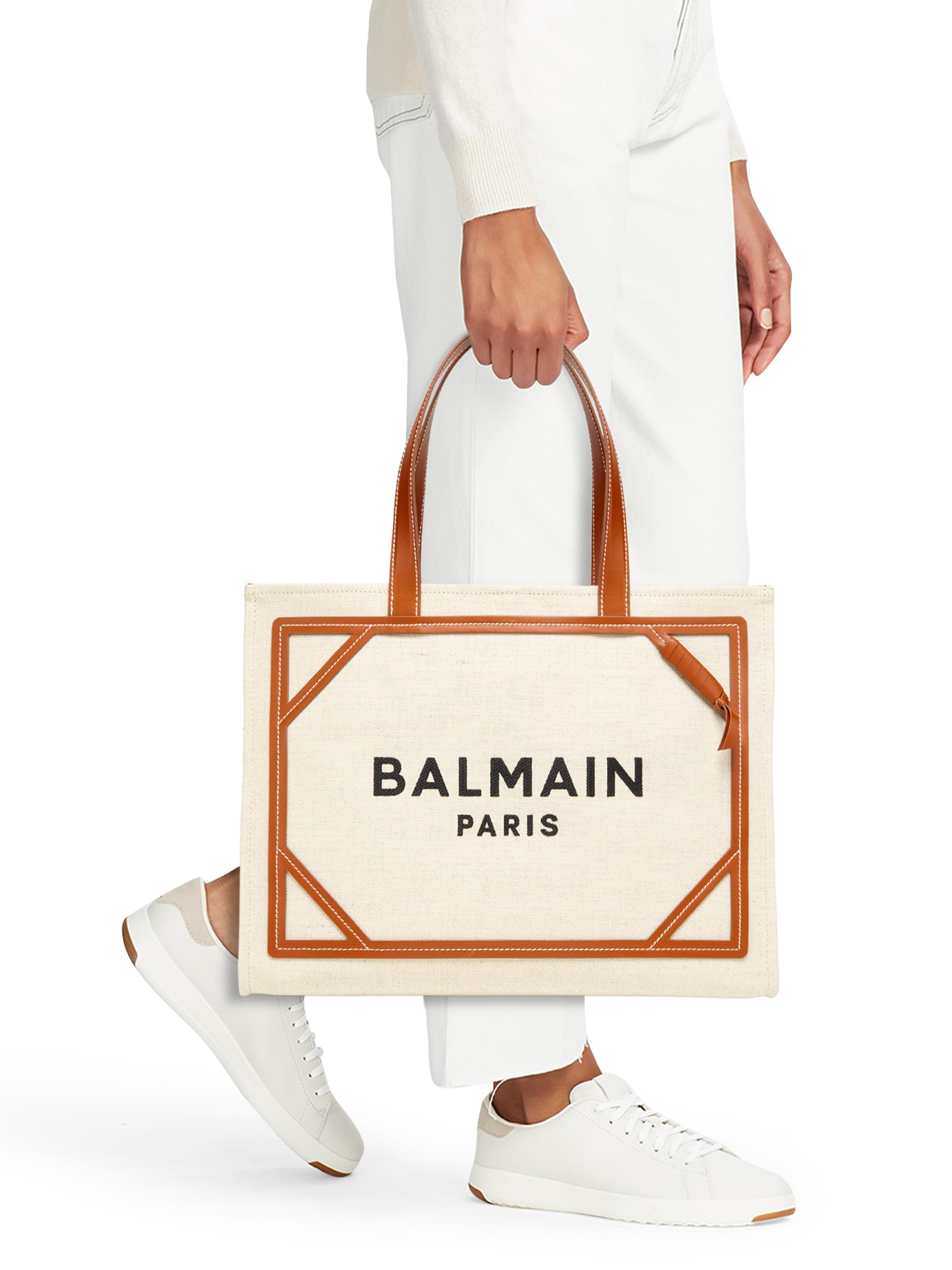 Balmain B-Army Medium Canvas Shopper Tote Bag GEM NATURE