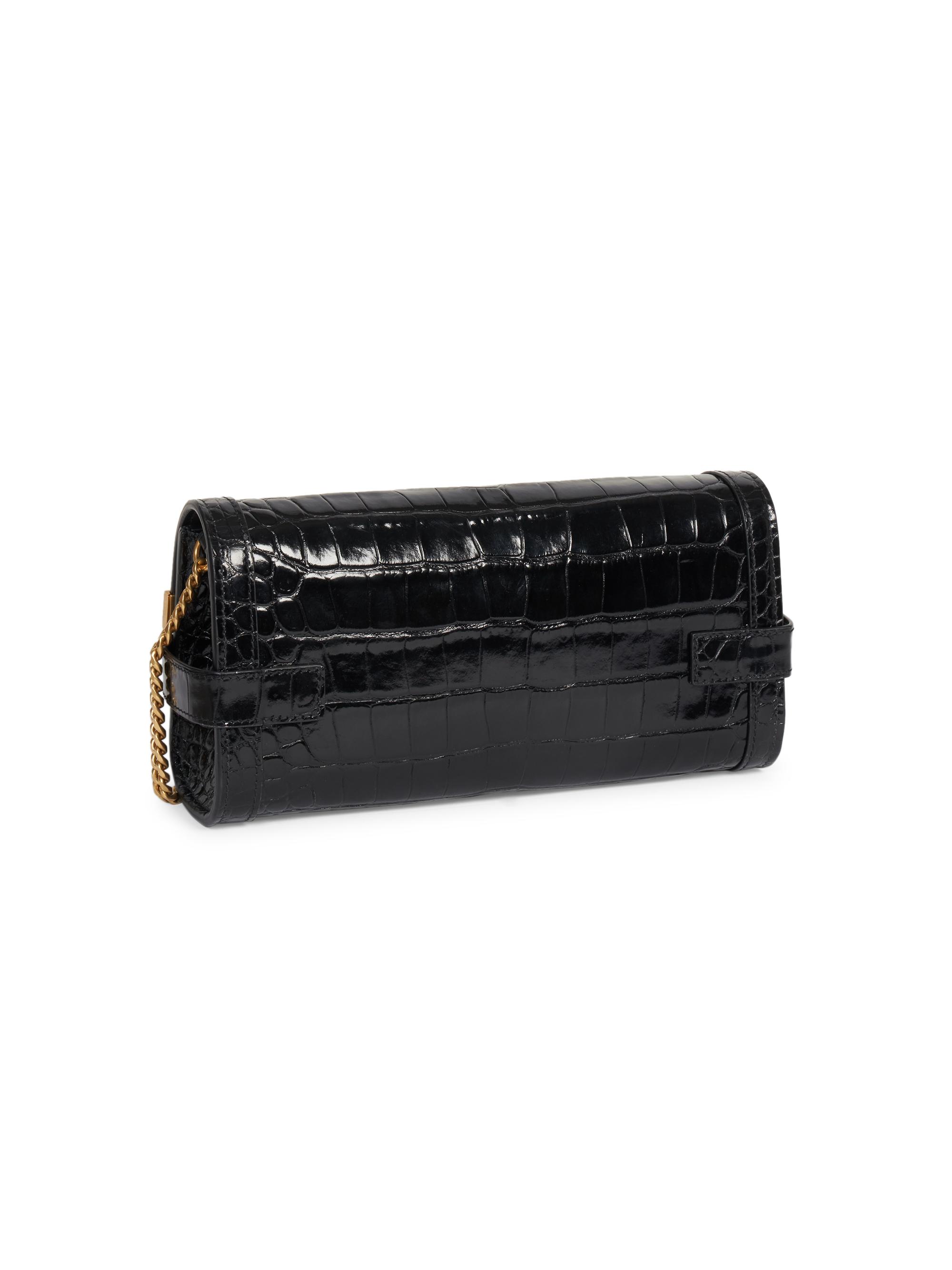 Balmain B-Buzz 23 Crocodile-Embossed Leather Pouch