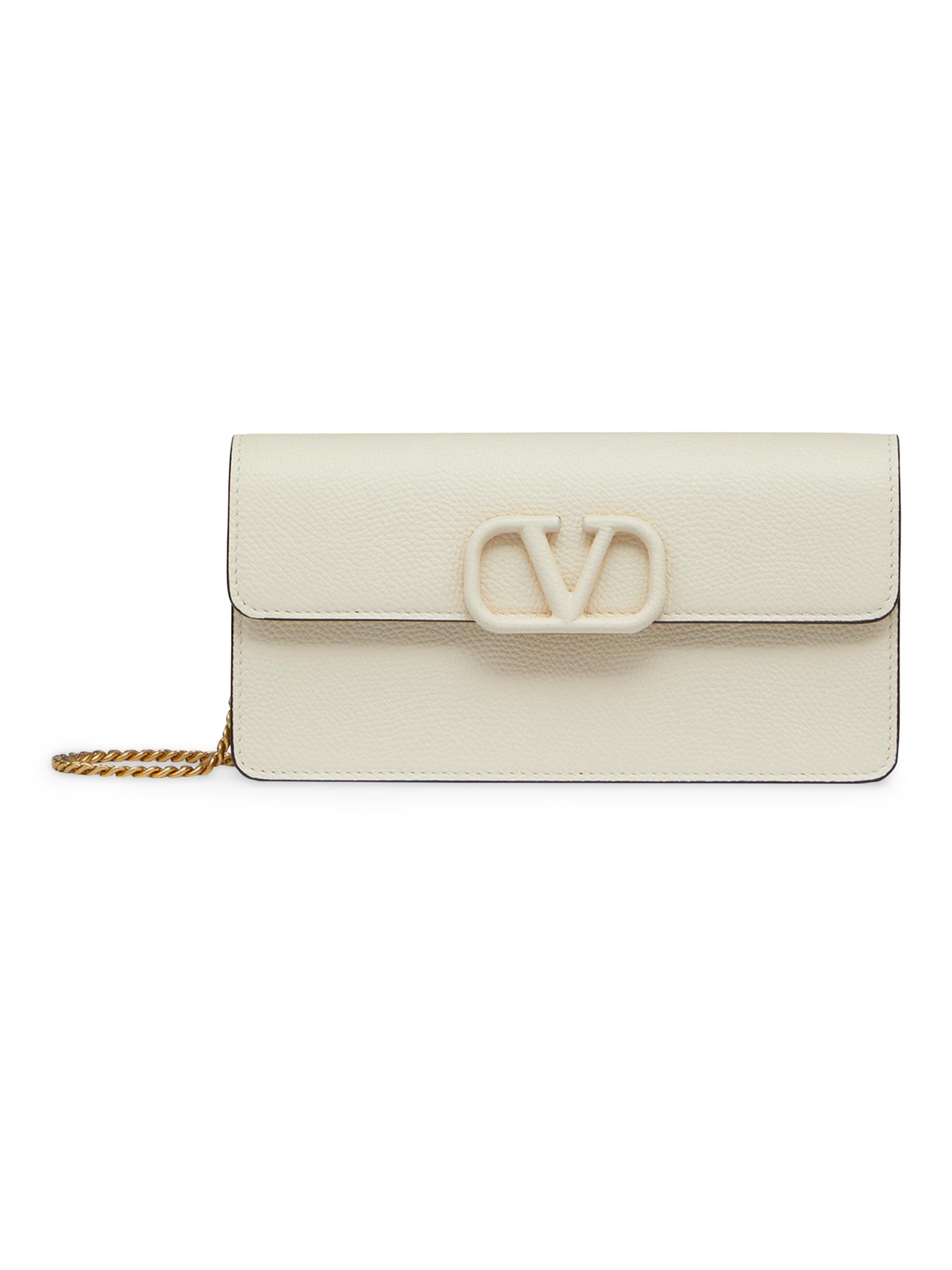 Valentino Garavani Vlogo Signature Grainy Calfskin Wallet with Chain