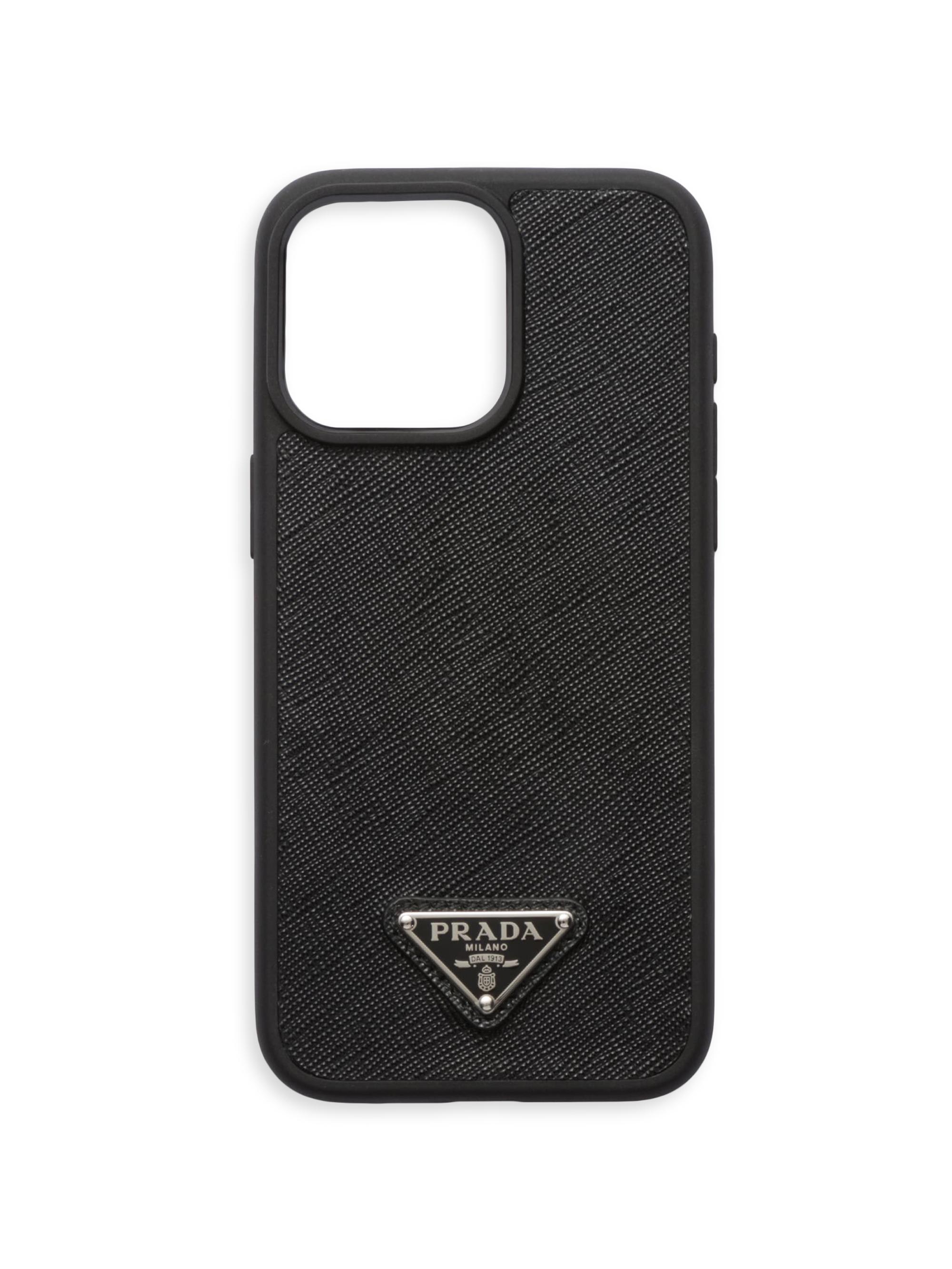 Prada Saffiano Leather Cover For Iphone 15 Pro Max BLACK