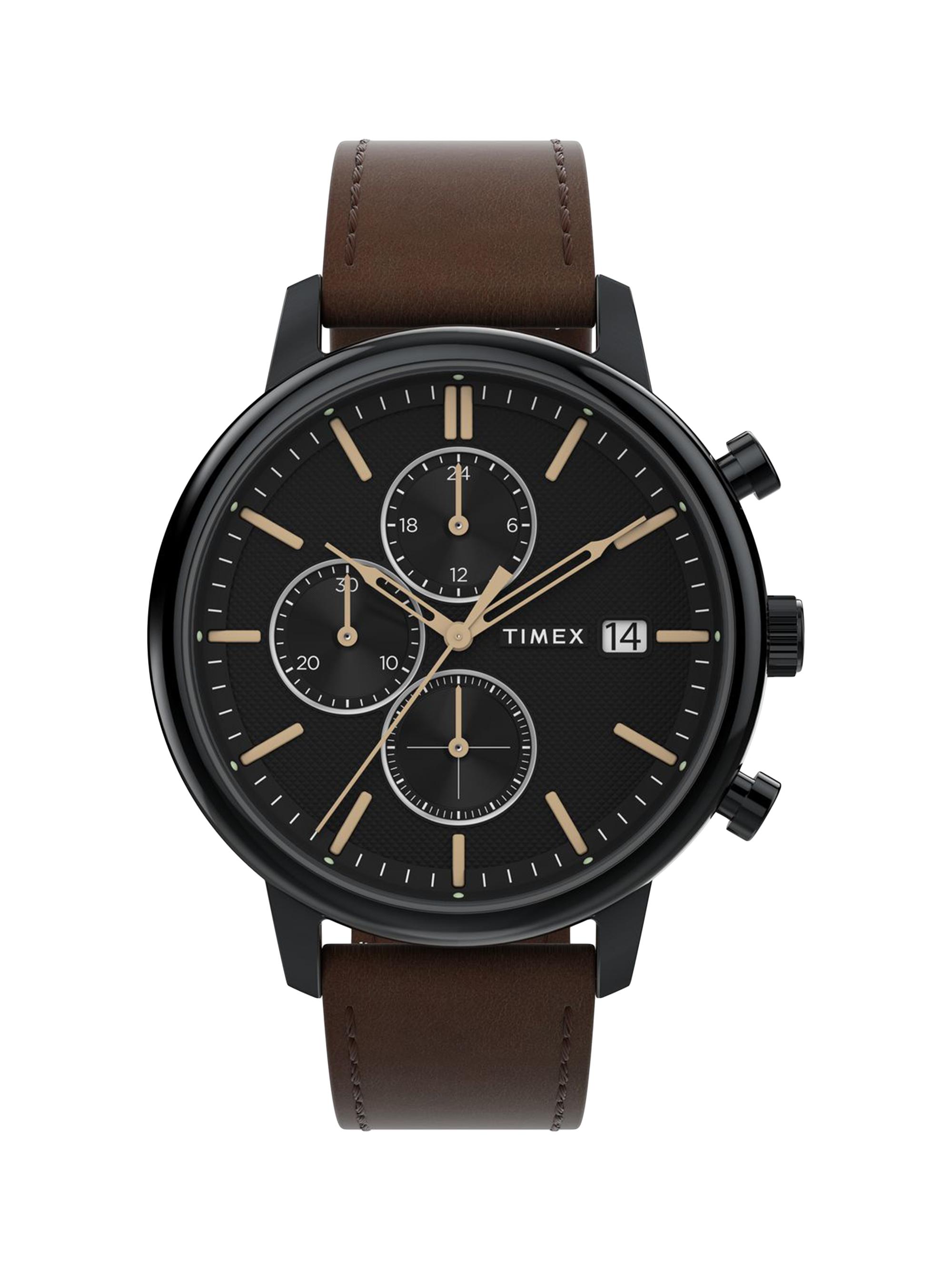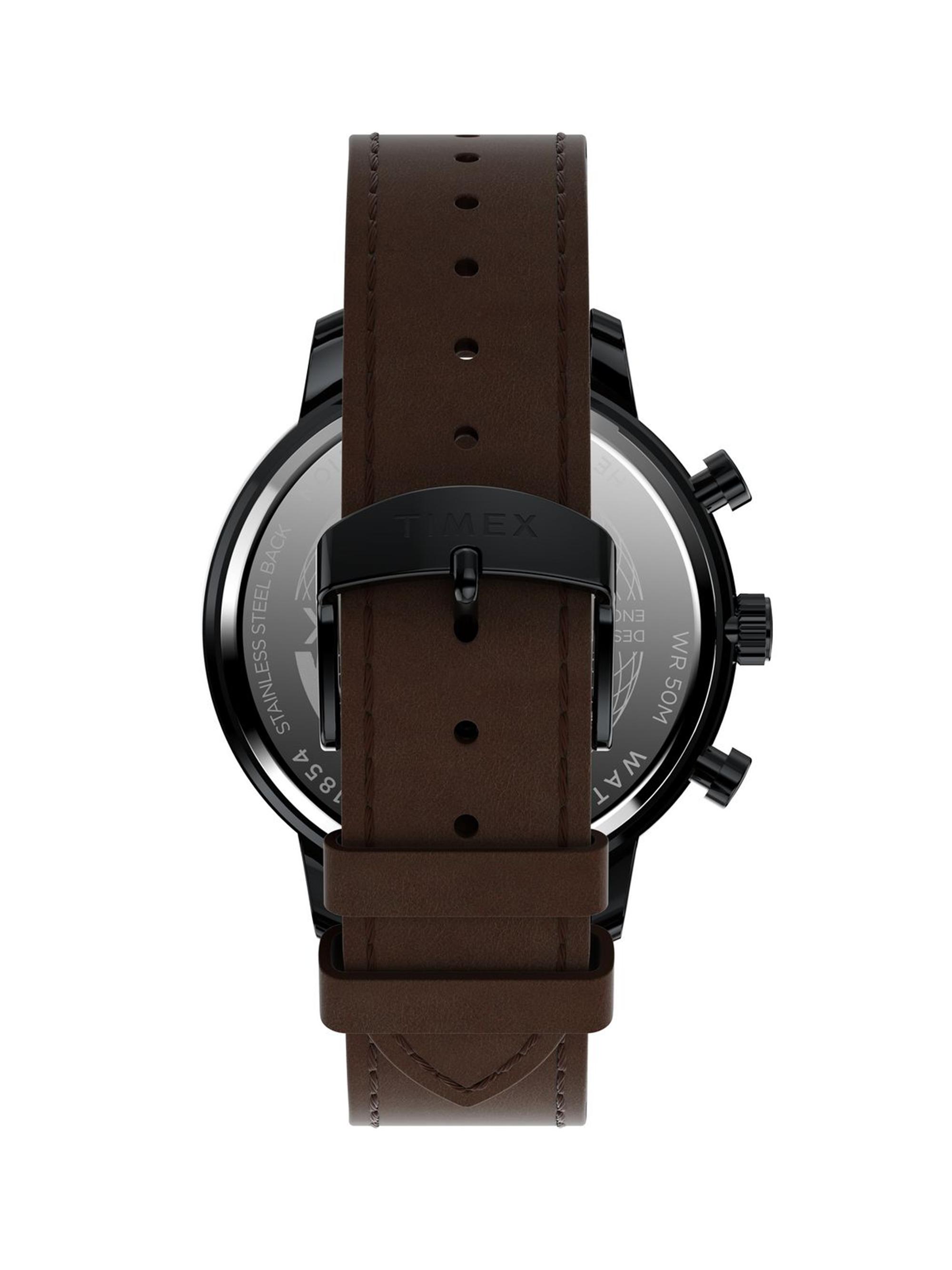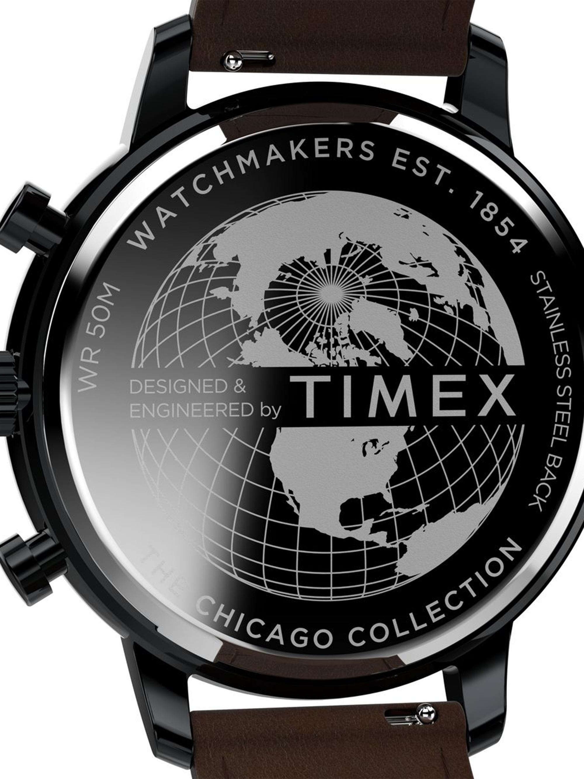 Timex Chicago Stainless Steel & Leather Strap Chronograph Watch/45MM