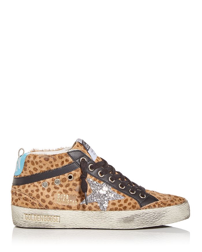 Golden Goose Womens Mid Star Giraffe Print Real Calf Hair Mid Top Sneakers