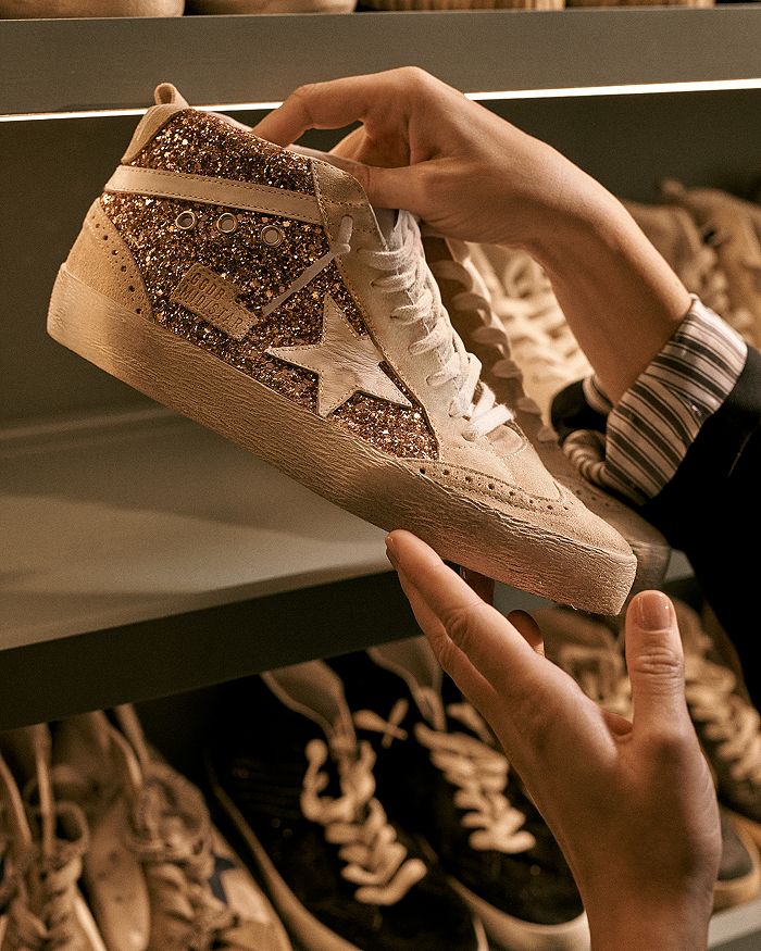 Golden Goose Womens Mid Star Glitter Mid Top Sneakers