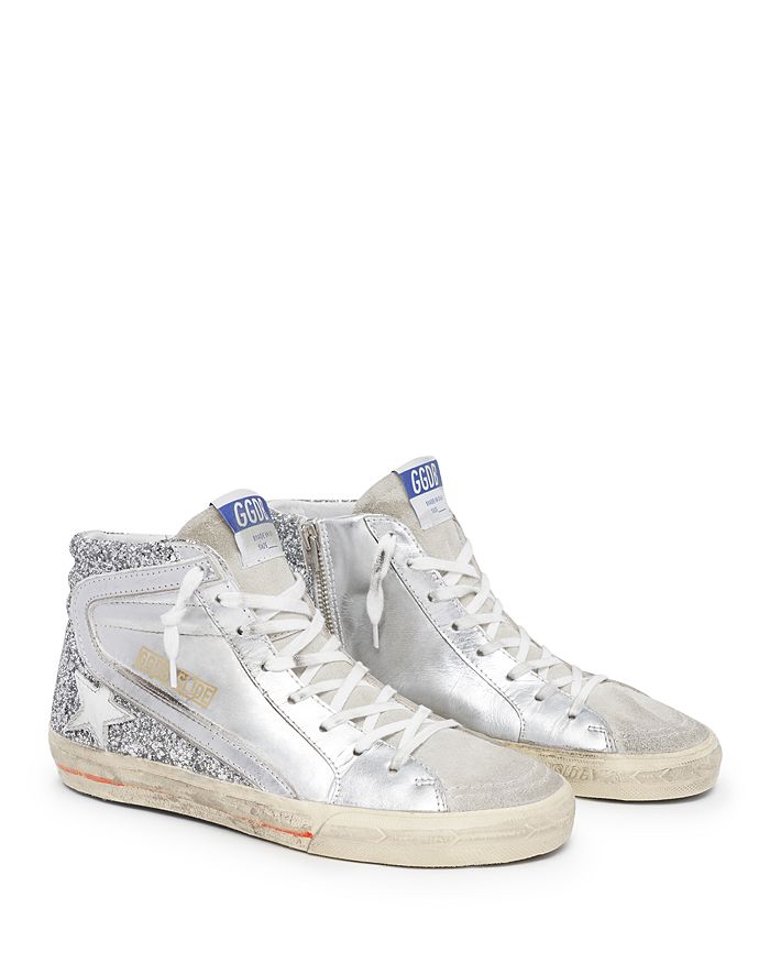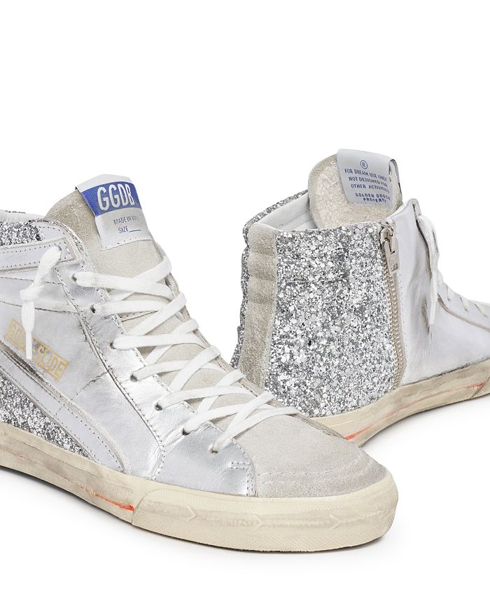 Golden Goose Womens Slide Glitter High Top Sneakers