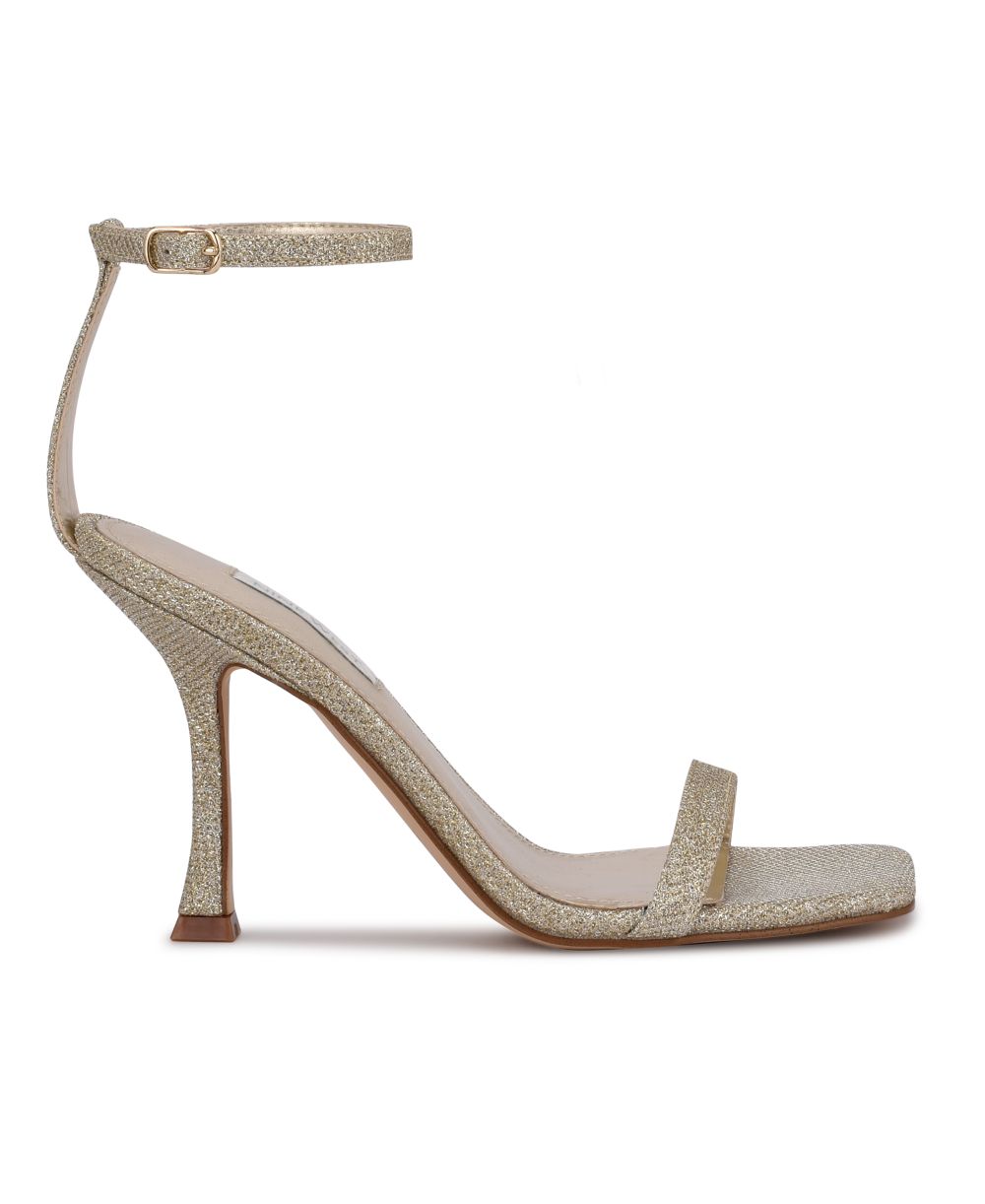 Nine West Womens Yess Square Toe Tapered Heel Dress Sandals