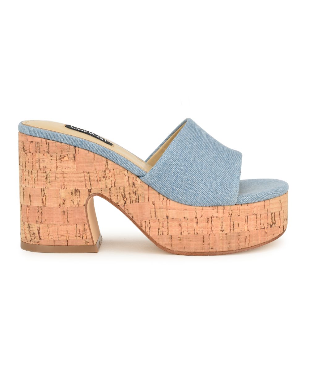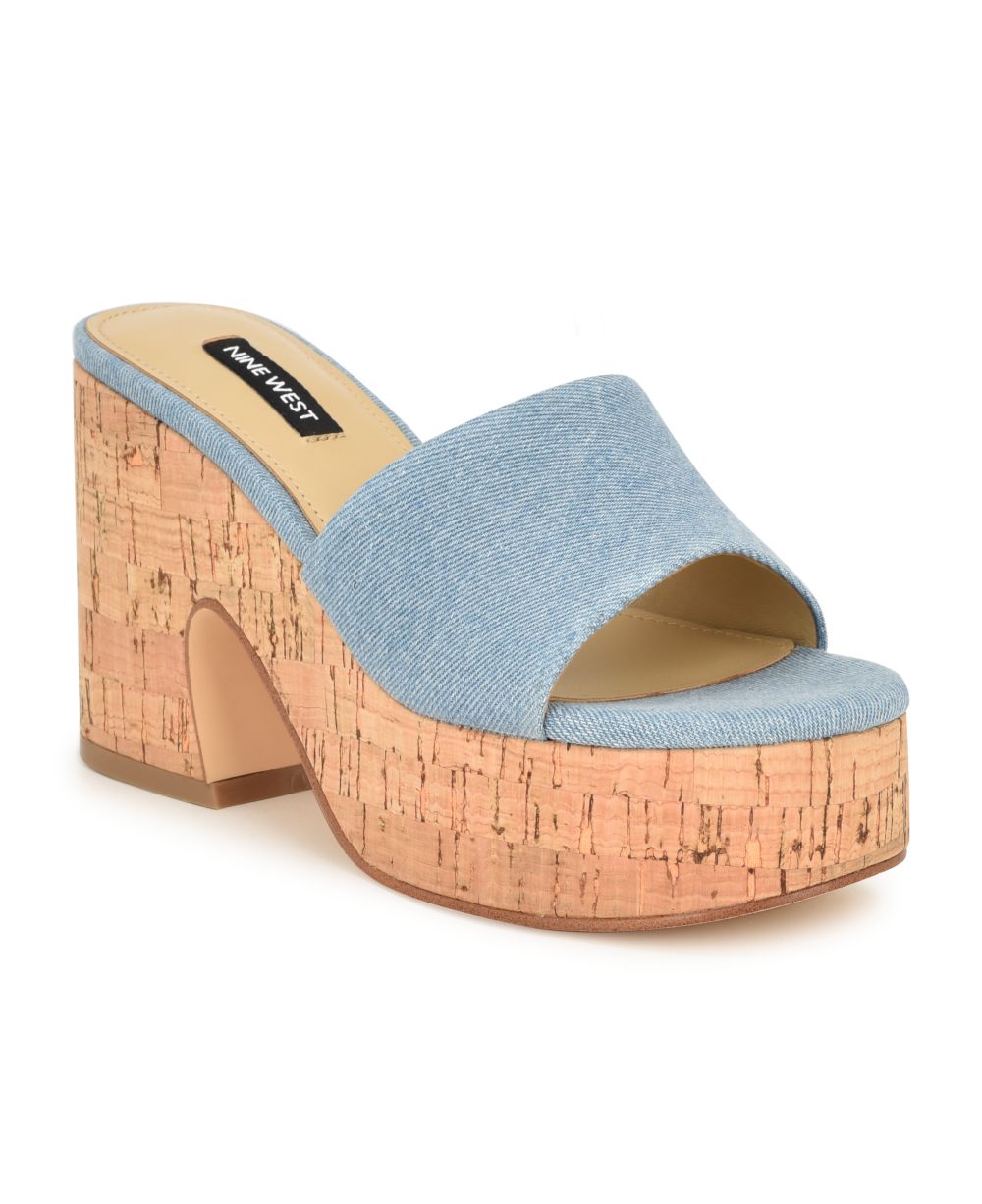 Nine West Womens Boone Slip On Block Heel Platform Sandals