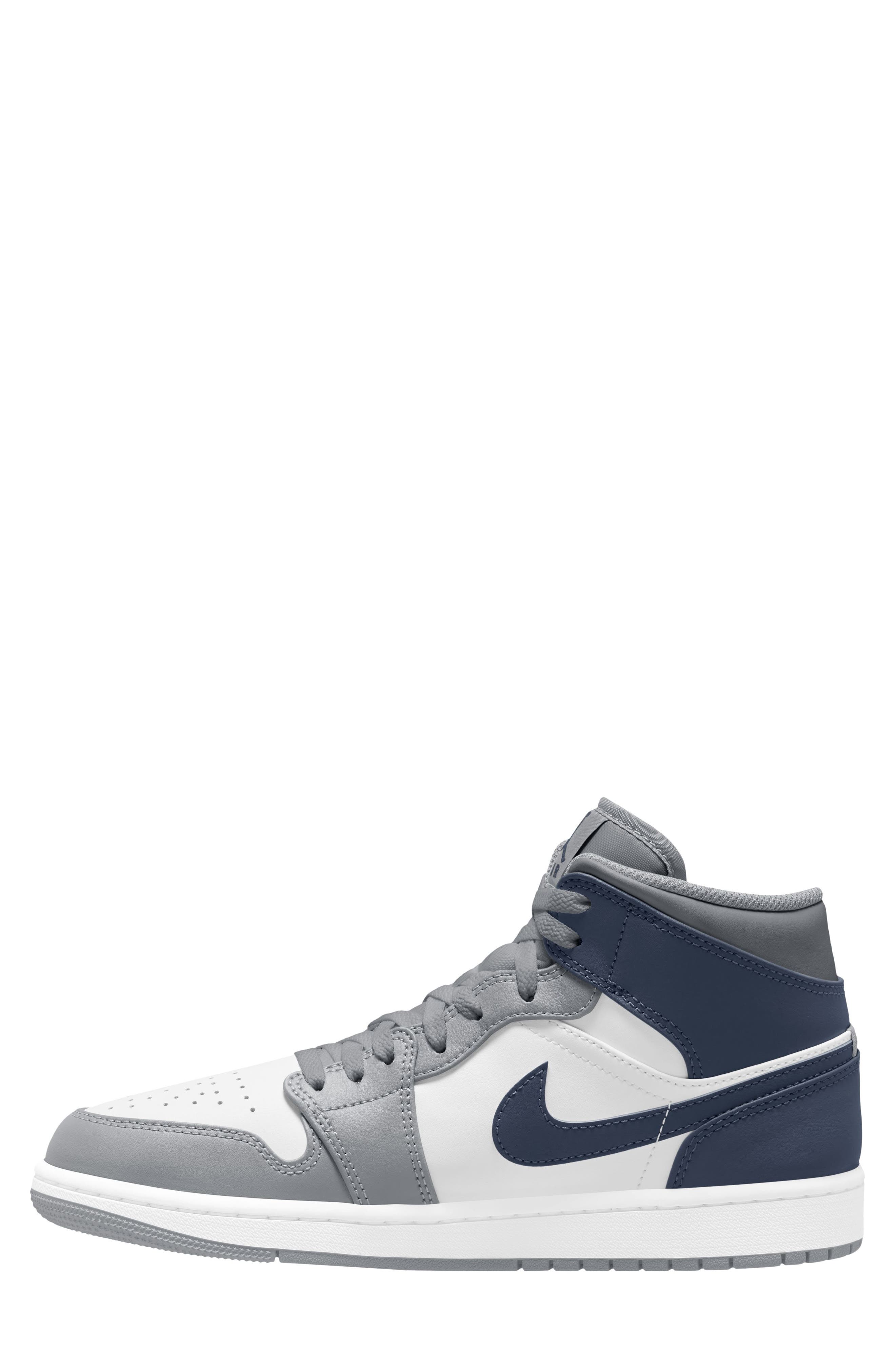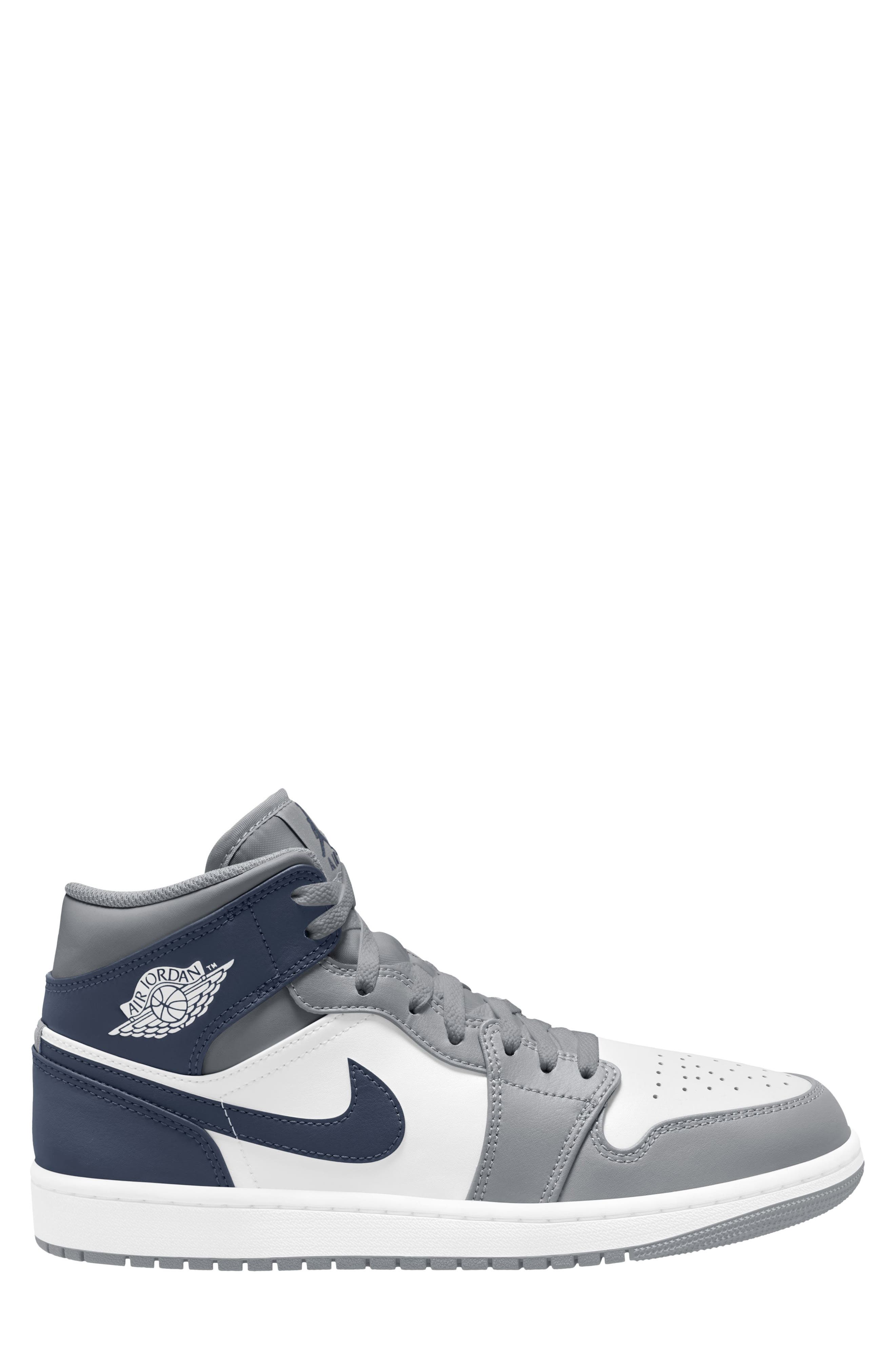 Jordan Air Jordan 1 Mid Sneaker_White/ Navy/ Wolf Grey