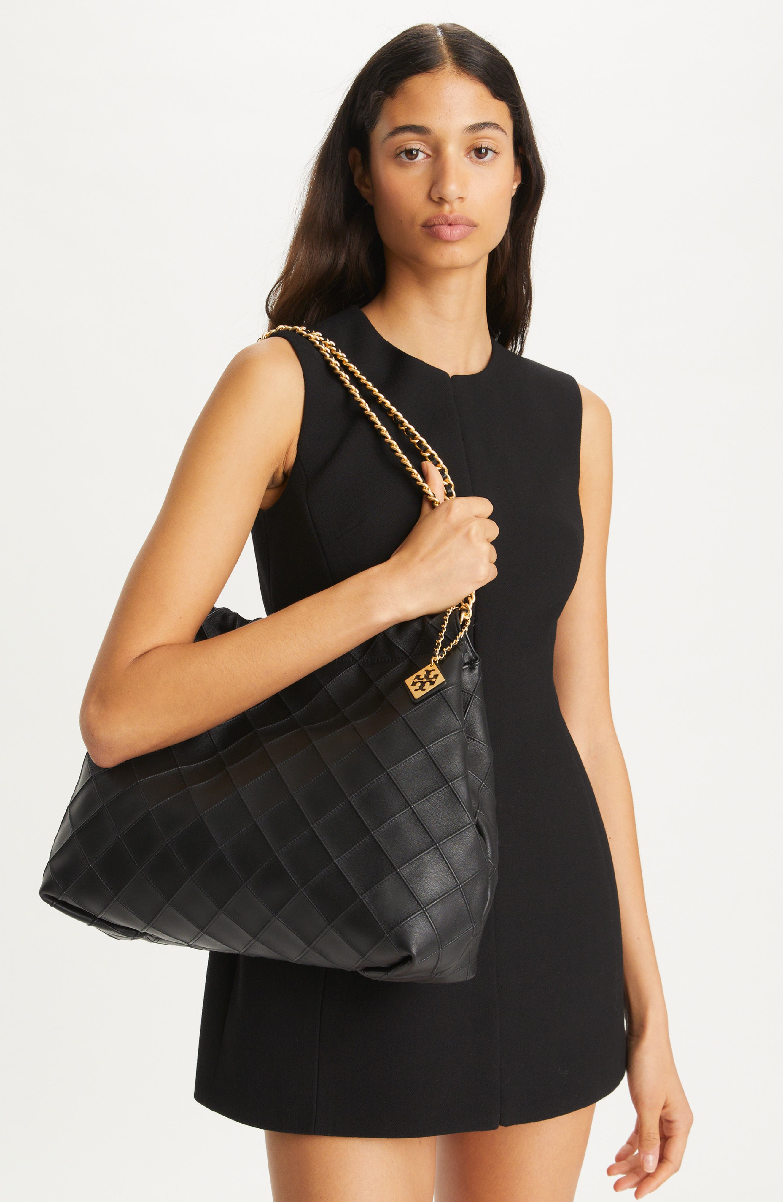 Tory Burch Fleming Soft Quilted Leather Hobo Bag_Black