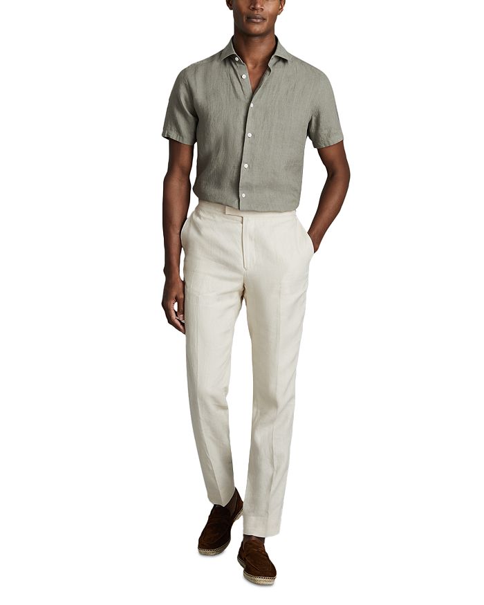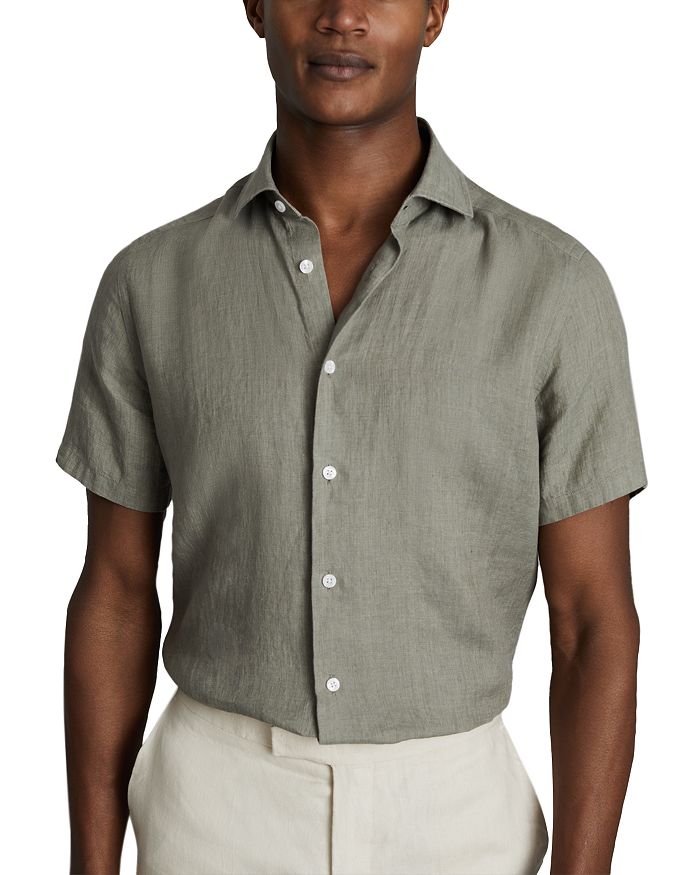 REISS Holiday Slim Fit Short Sleeve Linen Shirt
