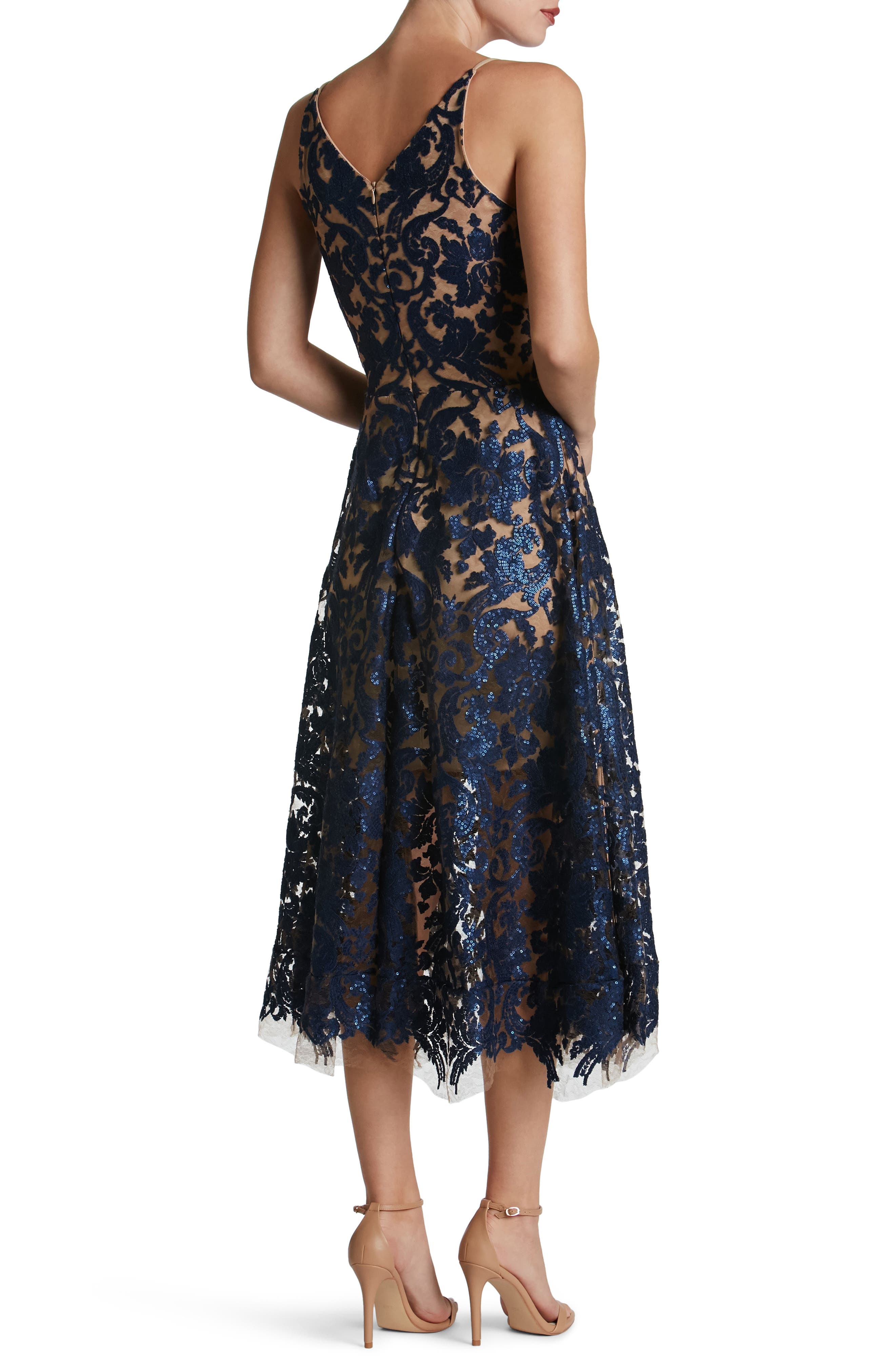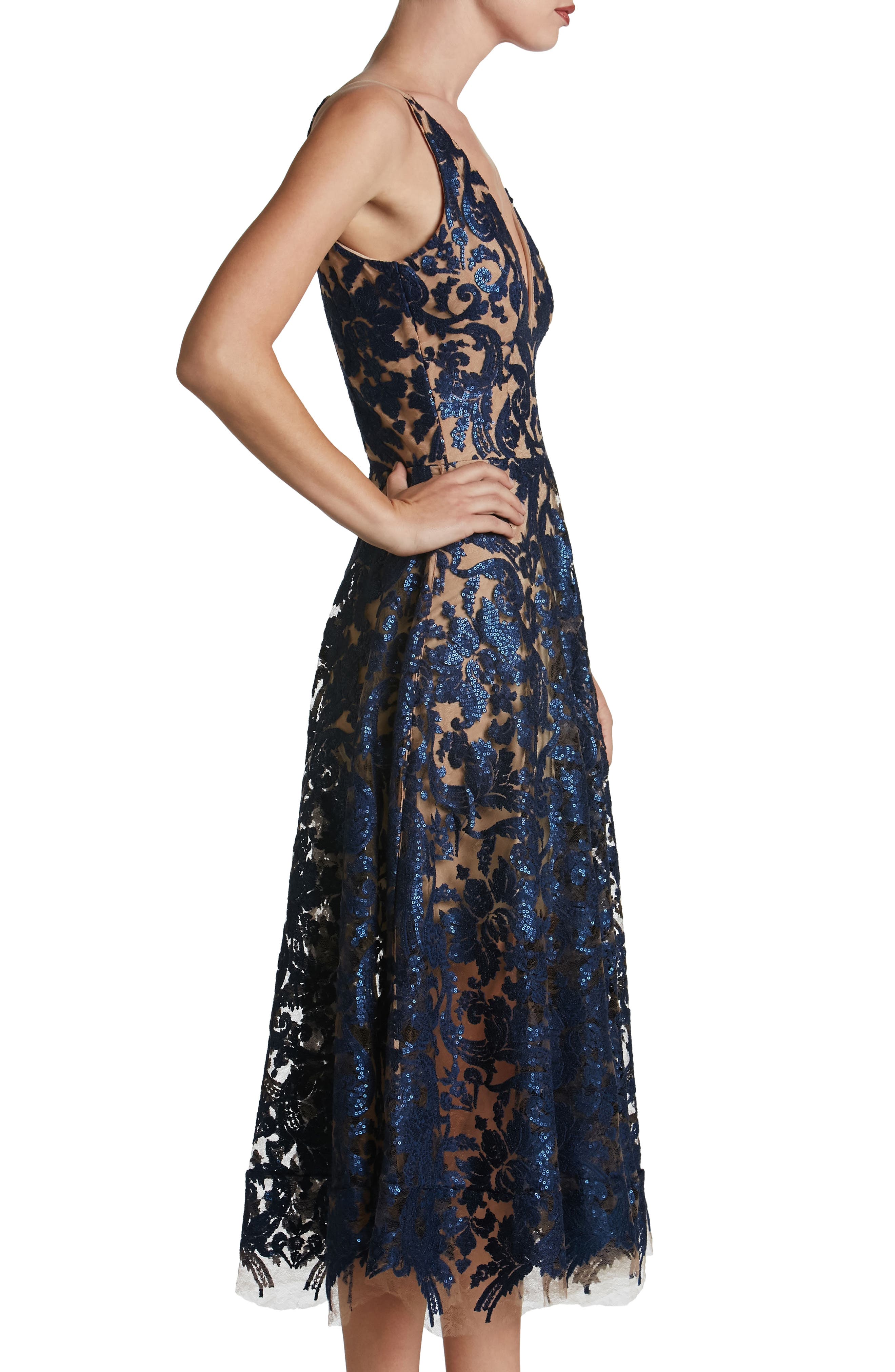 Dress the Population Blair Embellished Fit & Flare Cocktail Dress_Navy/ Nude