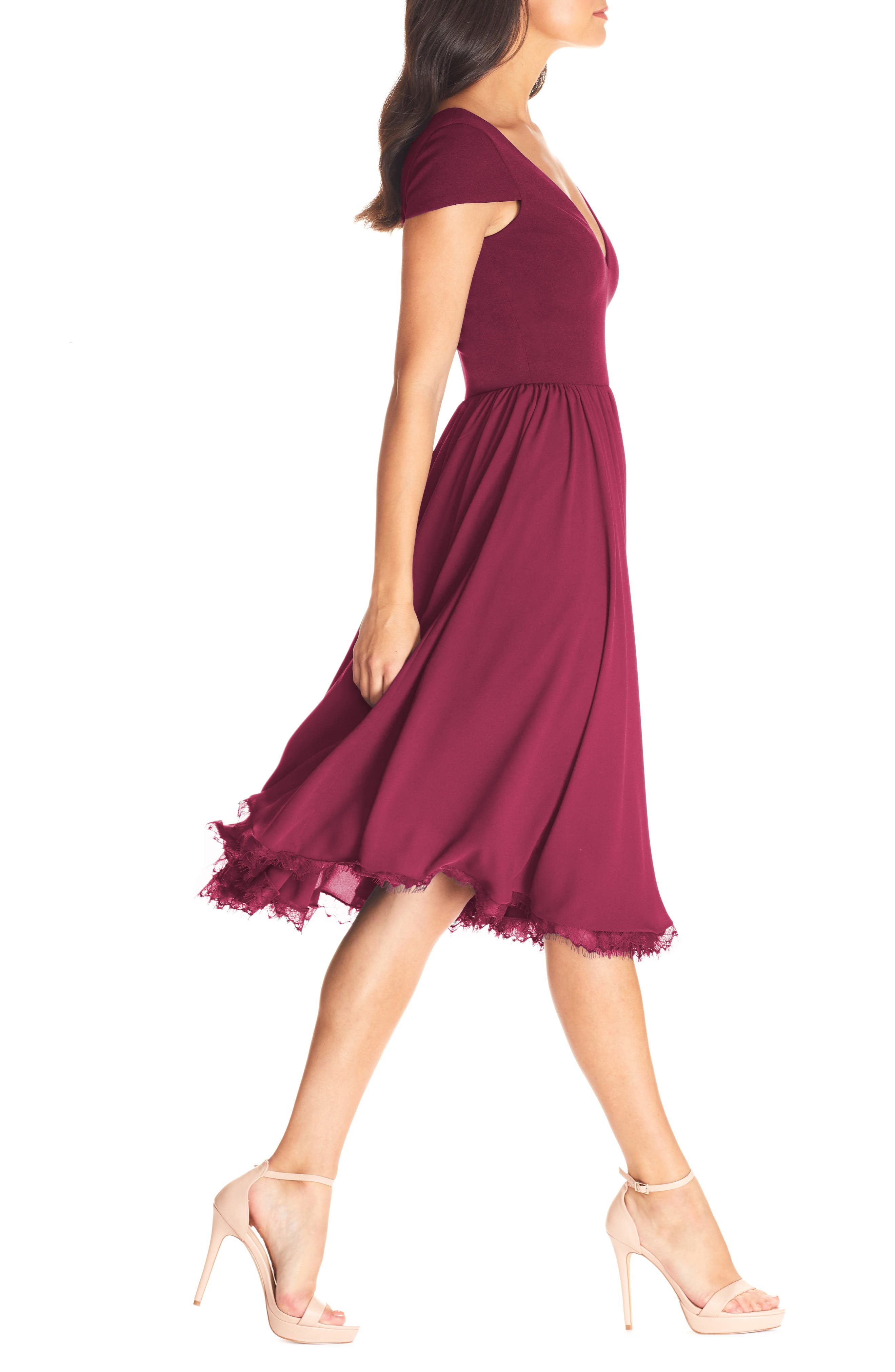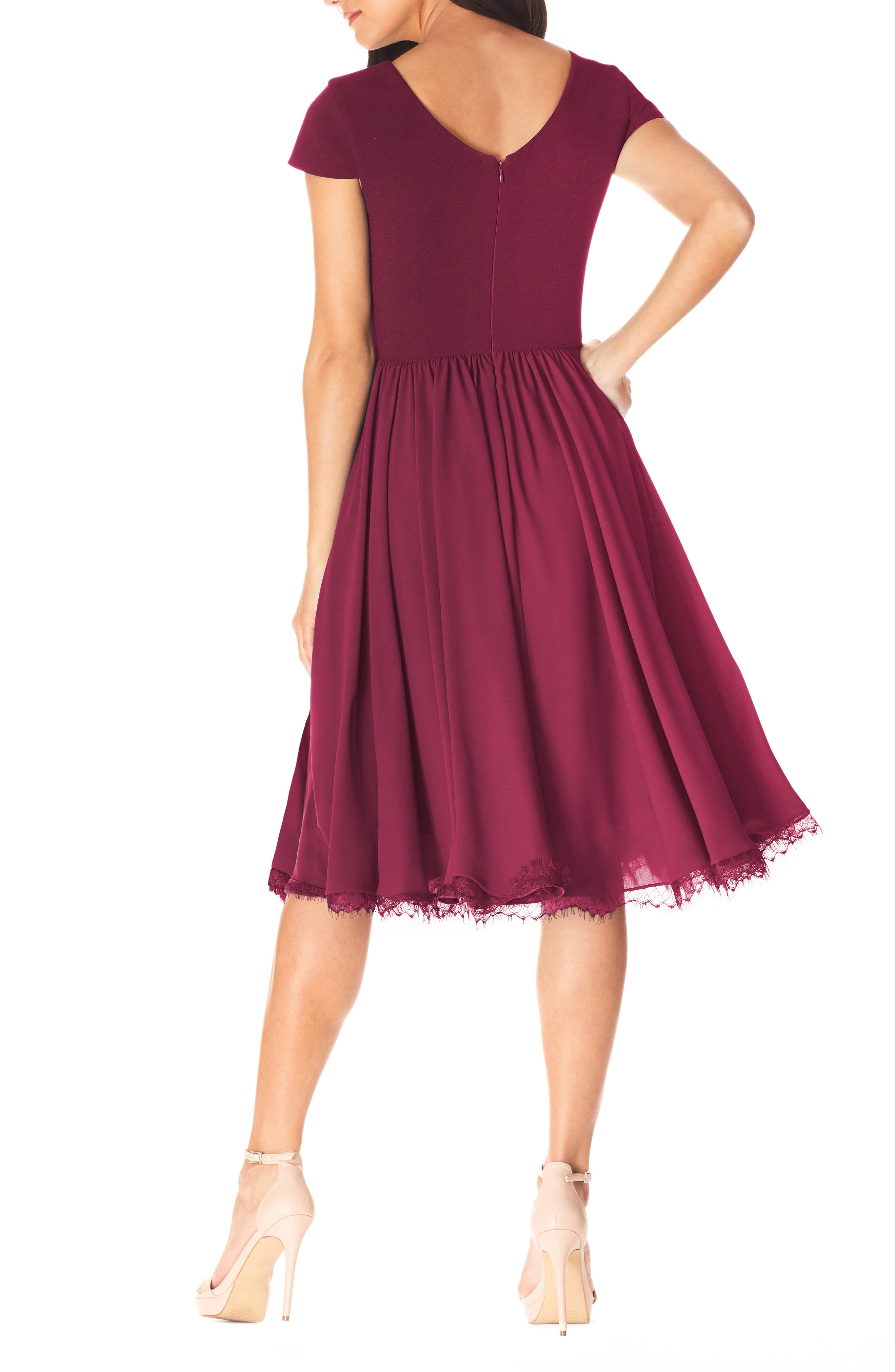 Dress the Population Corey Chiffon Fit & Flare Cocktail Dress_Dark Magenta