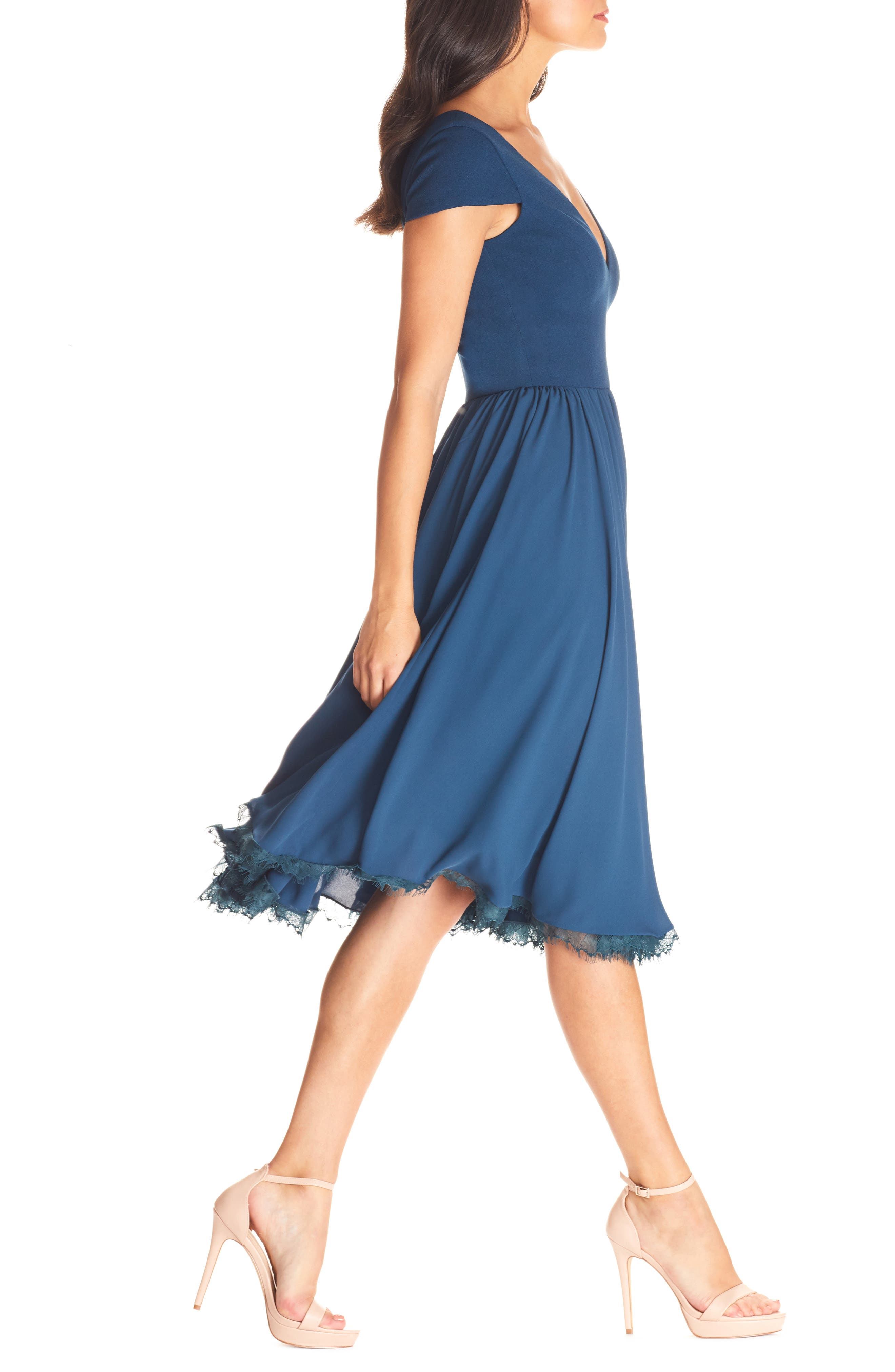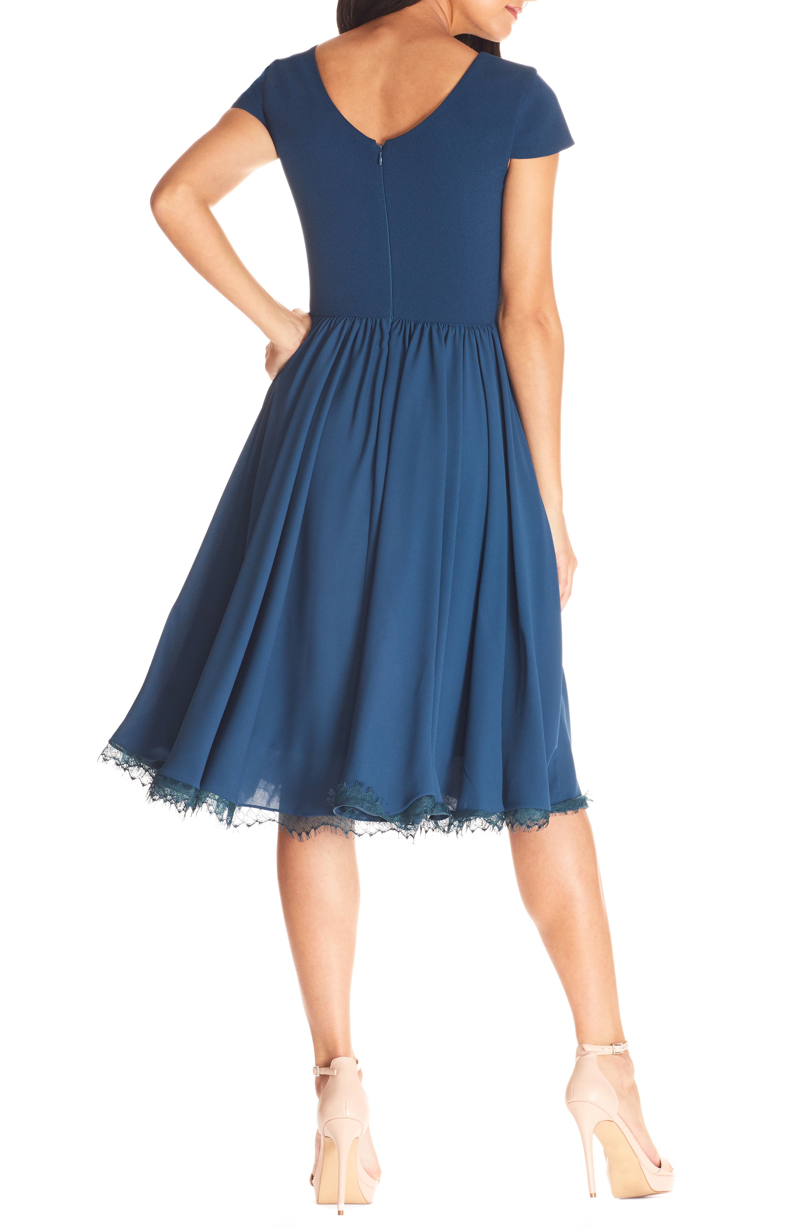 Dress the Population Corey Chiffon Fit & Flare Cocktail Dress_Peacock Blue