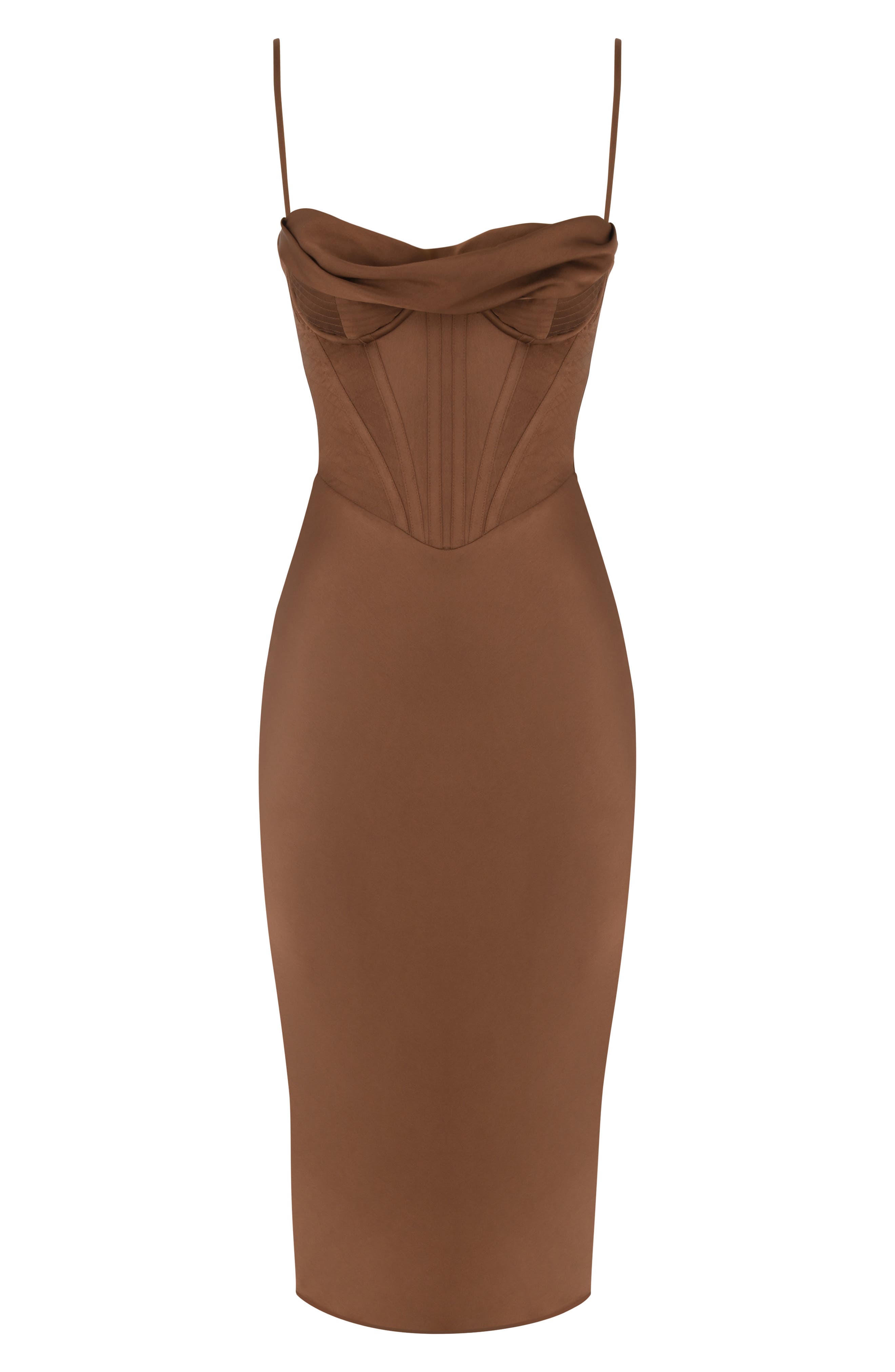 HOUSE OF CB Myrna Satin Corset Dress_Chocolate