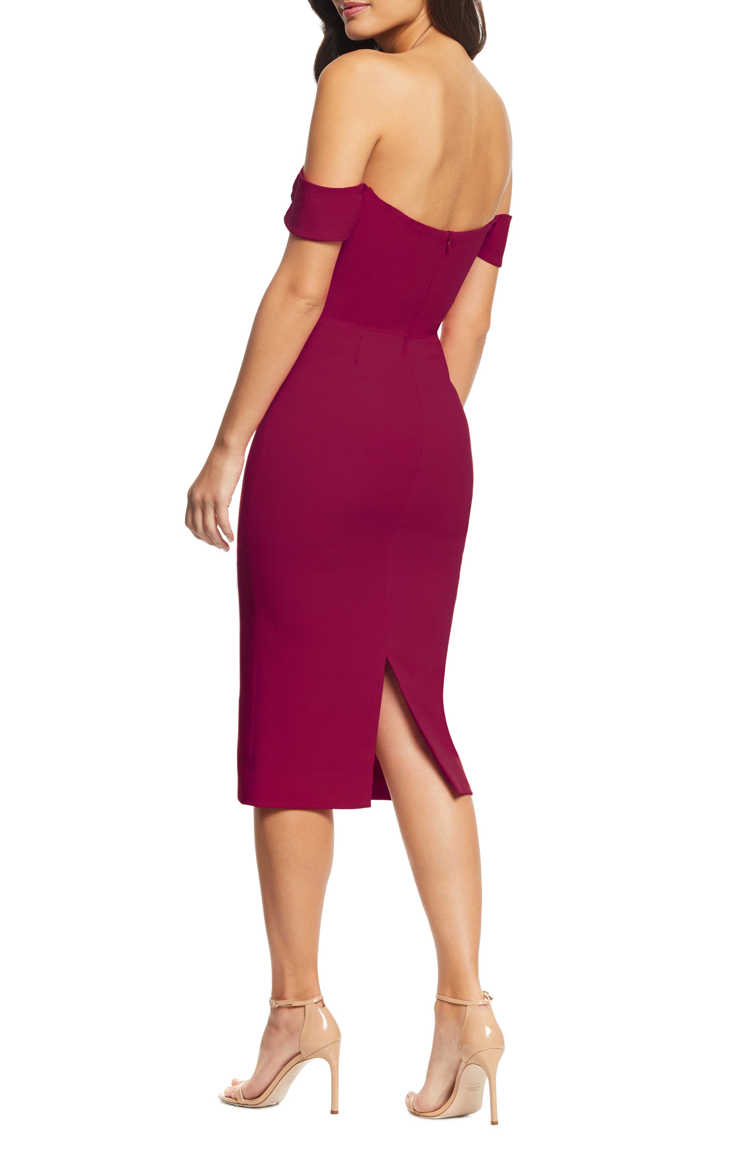 Dress the Population Bailey Off the Shoulder Body-Con Dress_Dark Magenta