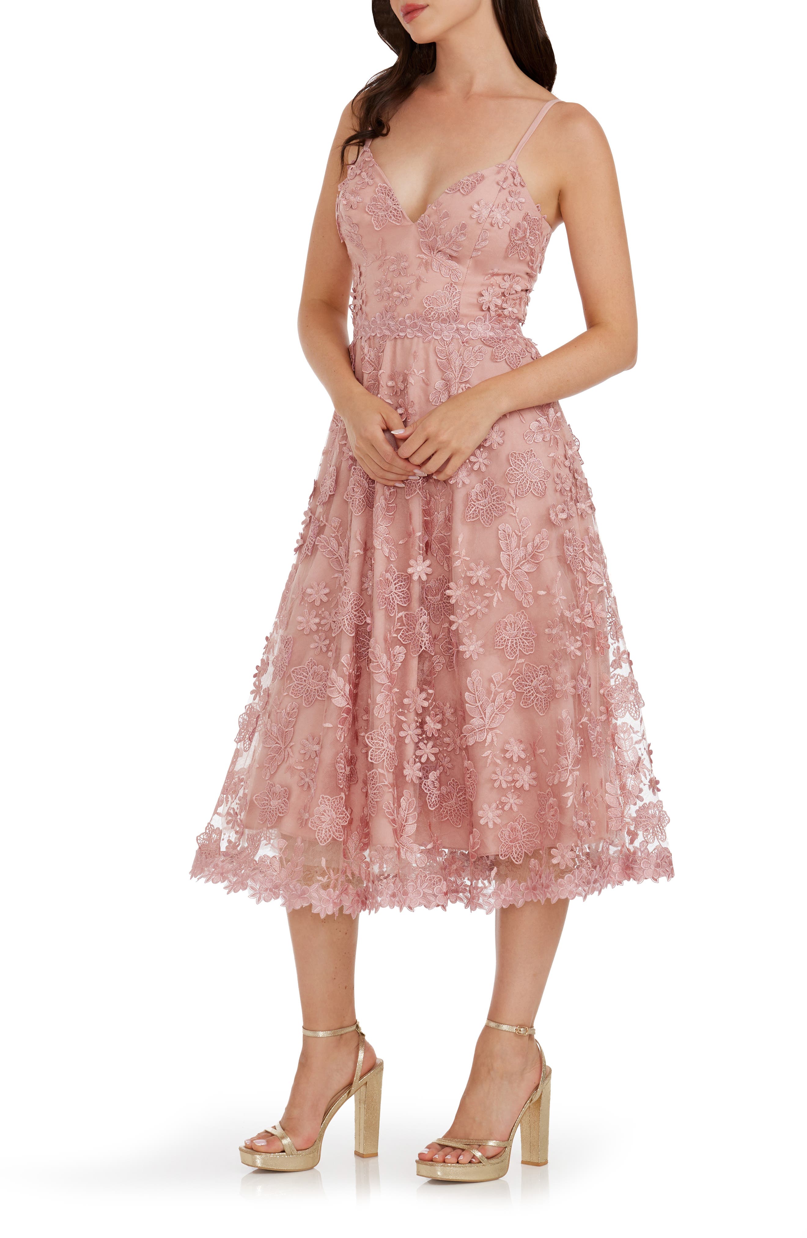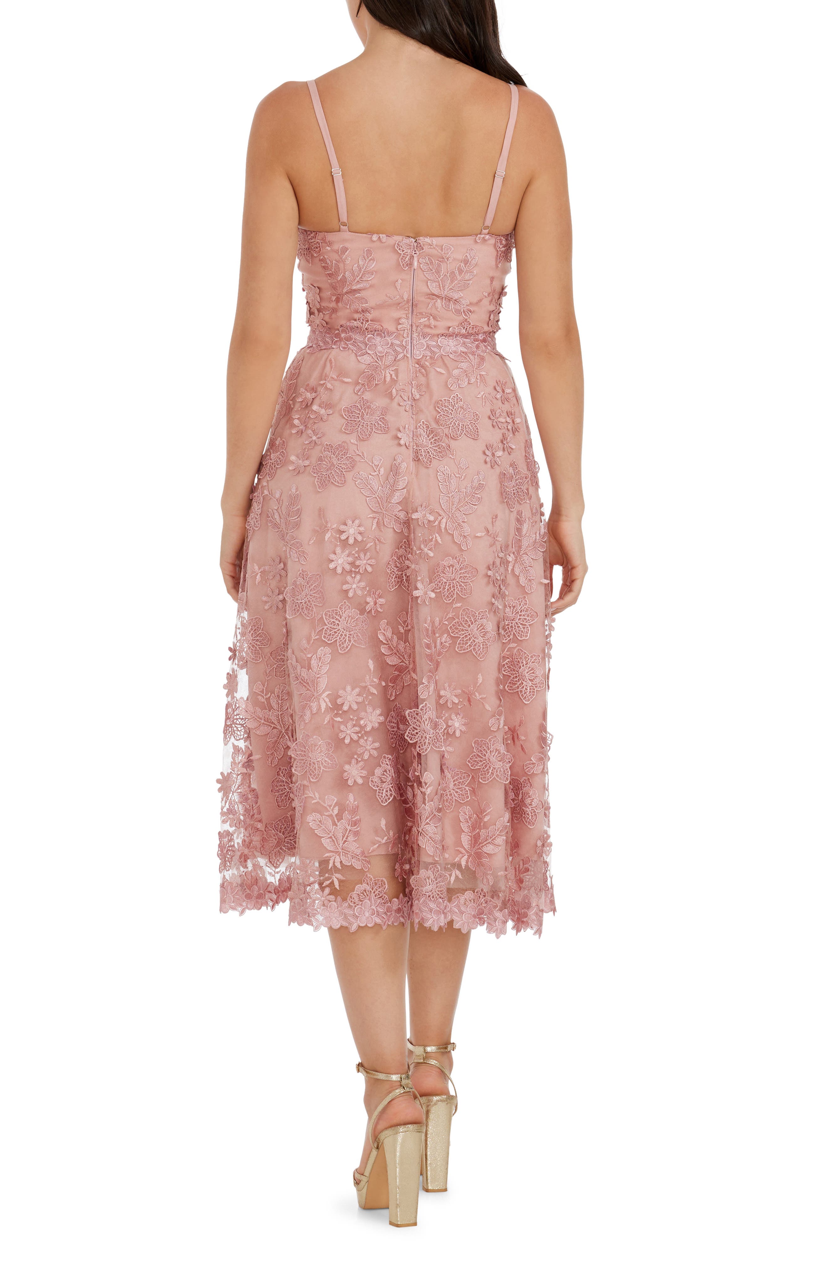 Dress the Population Tahani Floral Embroidered Fit & Flare Midi Dress_Blush
