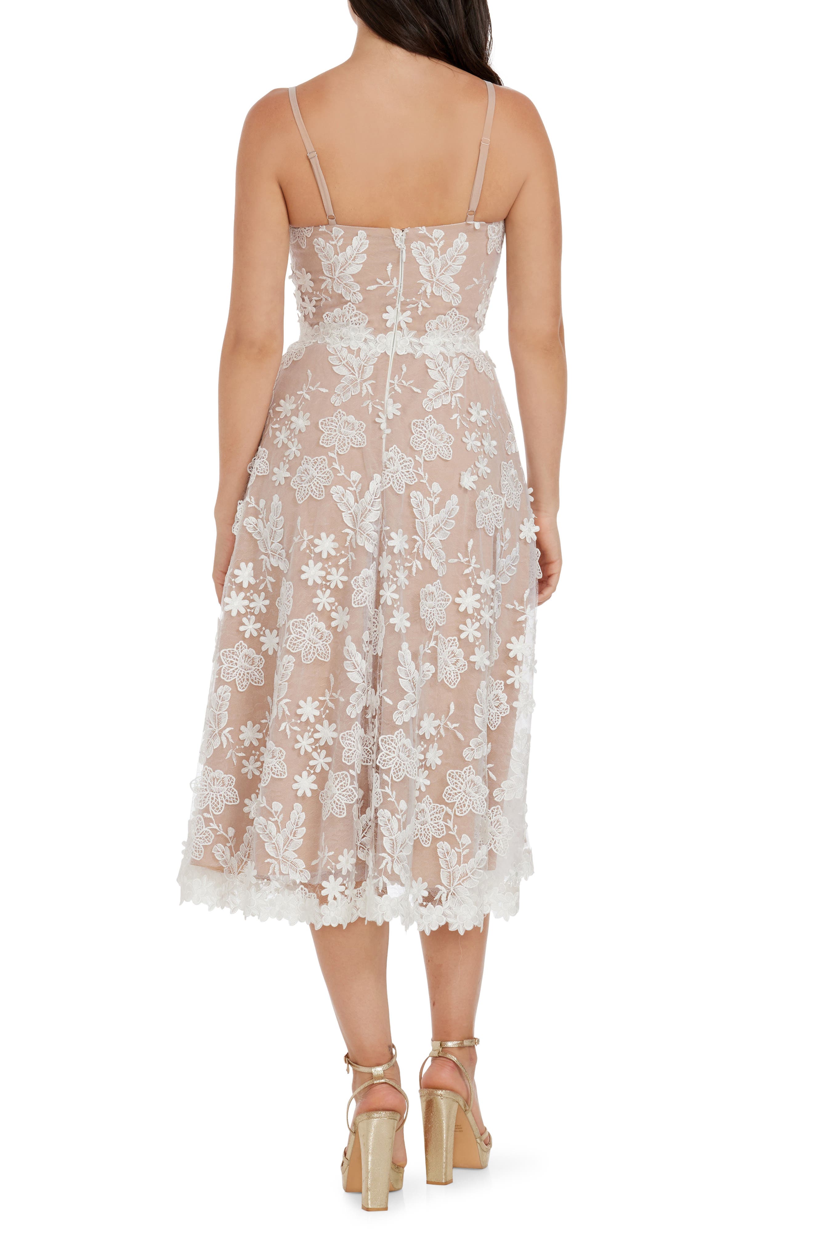 Dress the Population Tahani Floral Embroidered Fit & Flare Midi Dress_White/ Nude