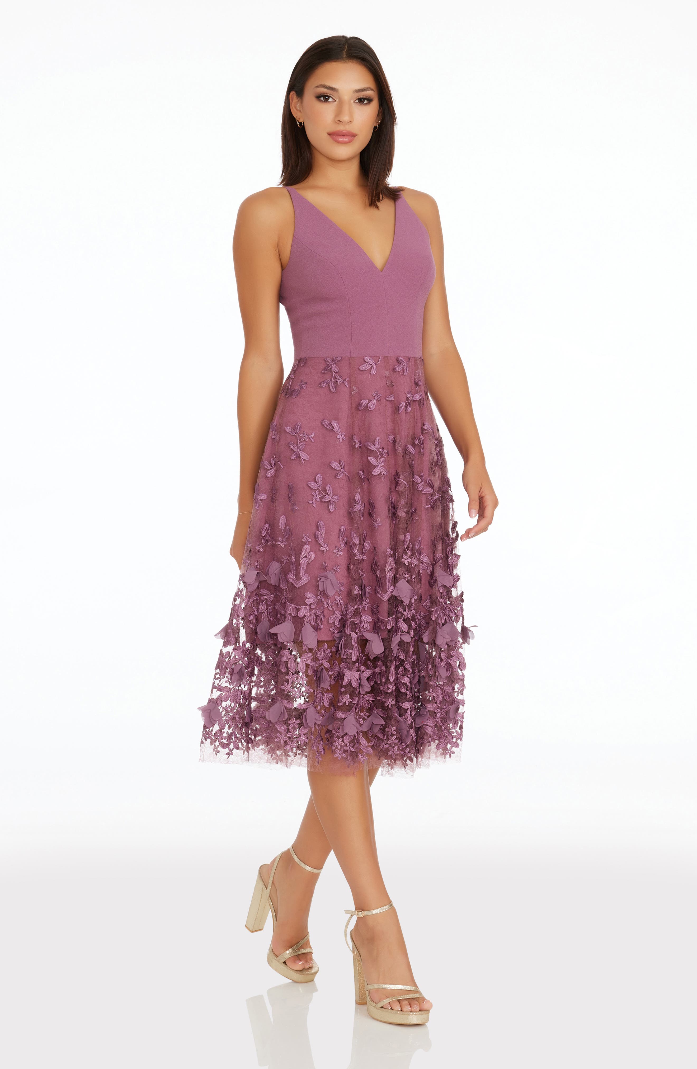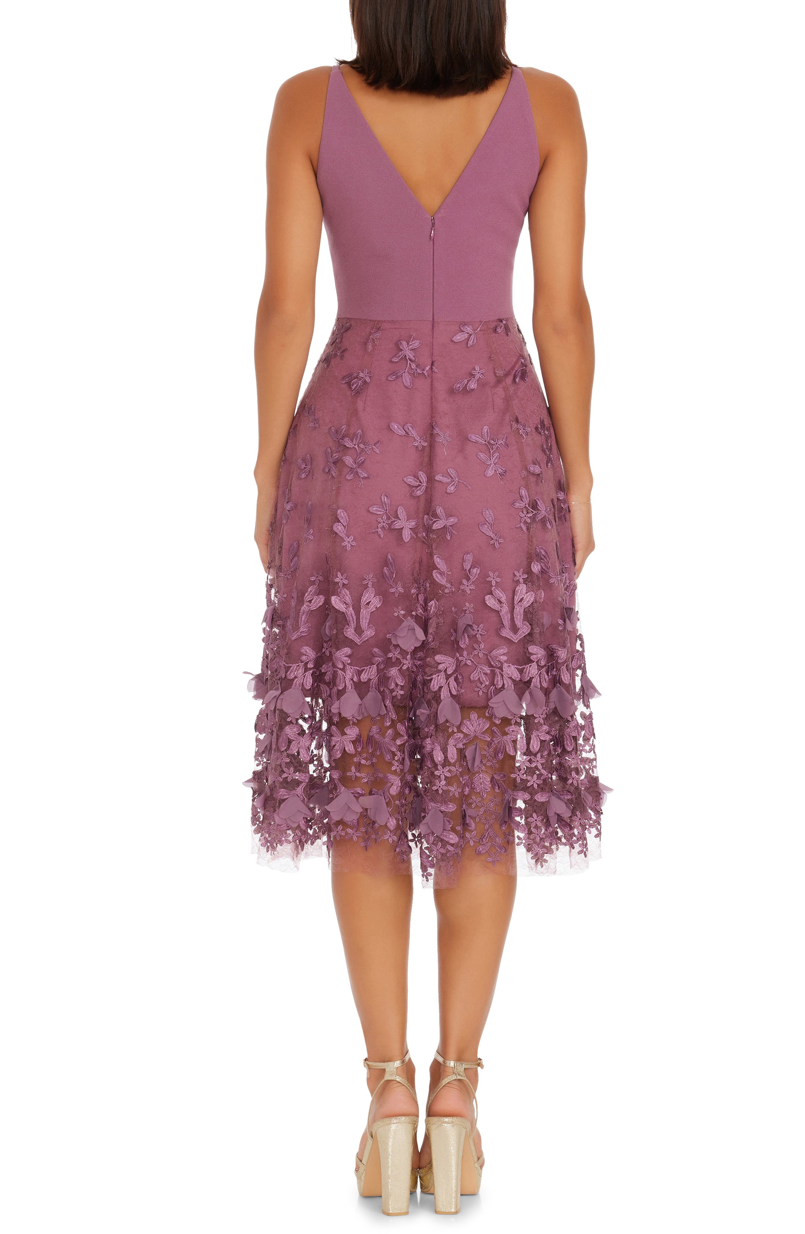 Dress the Population Darleen V-Neck Embroidered Mesh Cocktail Dress_Orchid
