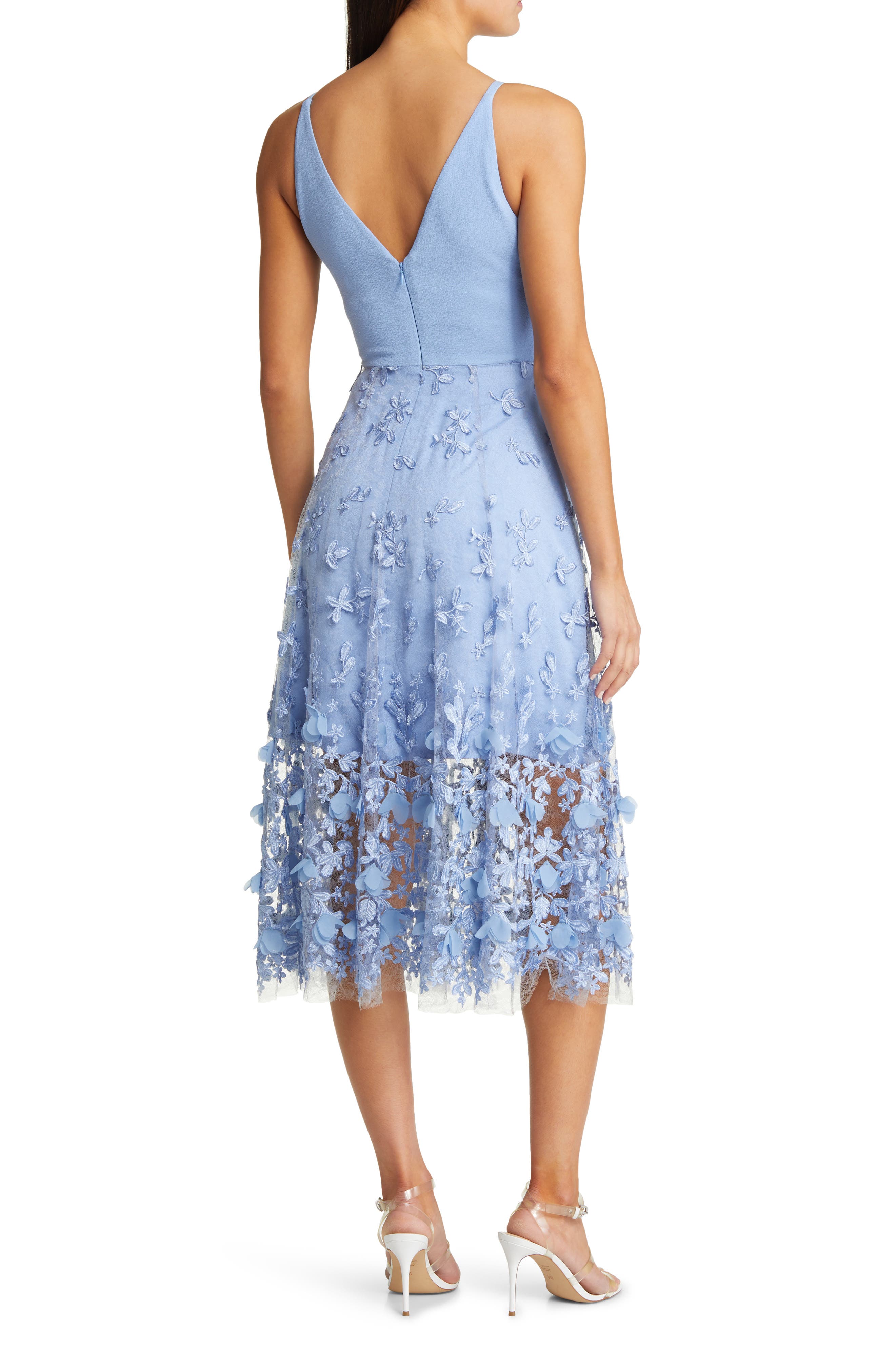 Dress the Population Darleen V-Neck Embroidered Mesh Cocktail Dress_Sky