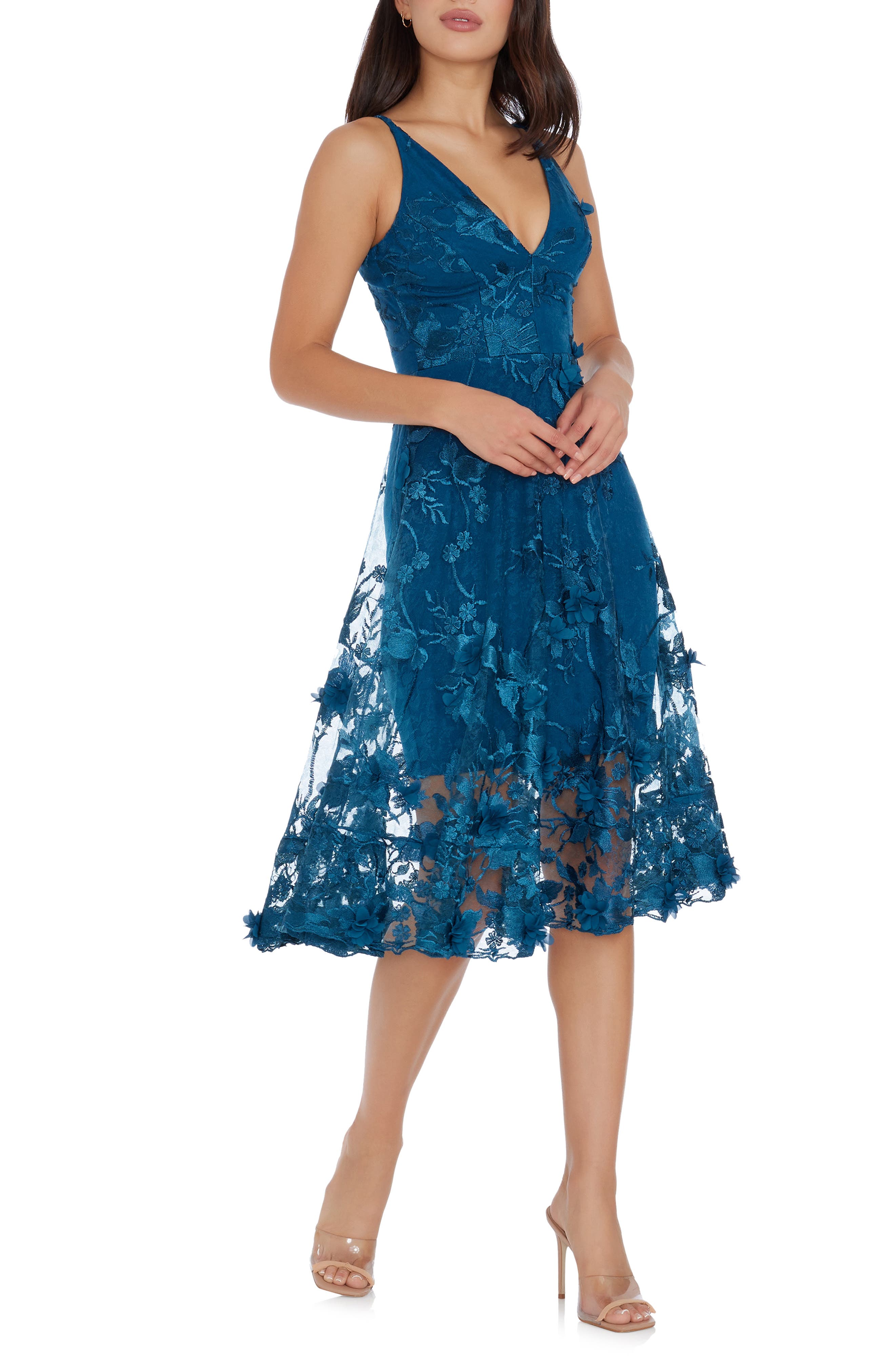 Dress the Population Audrey Embroidered Fit & Flare Dress_Peacock Blue