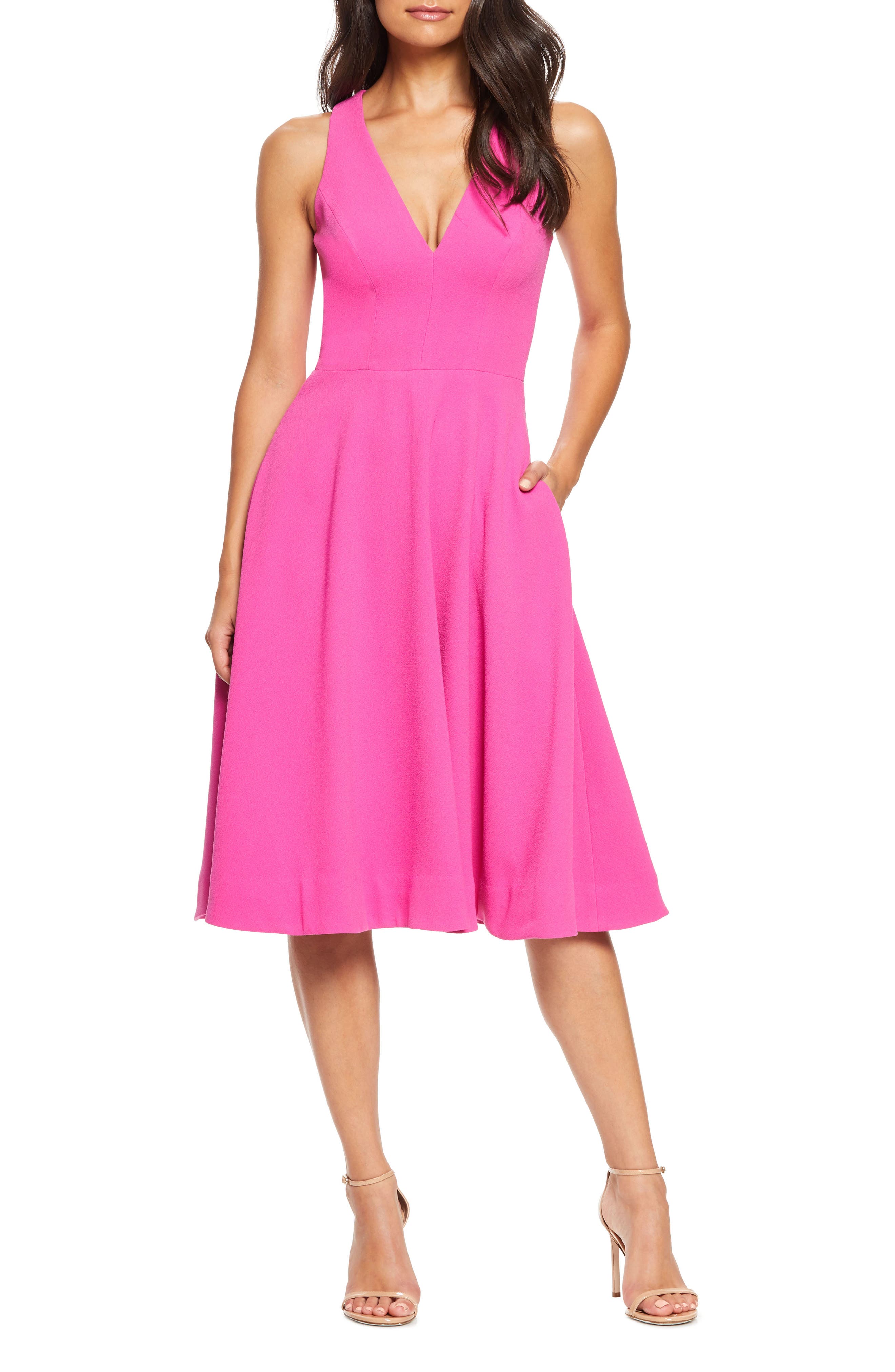 Dress the Population Catalina Fit & Flare Cocktail Dress_Bright Fuchsia