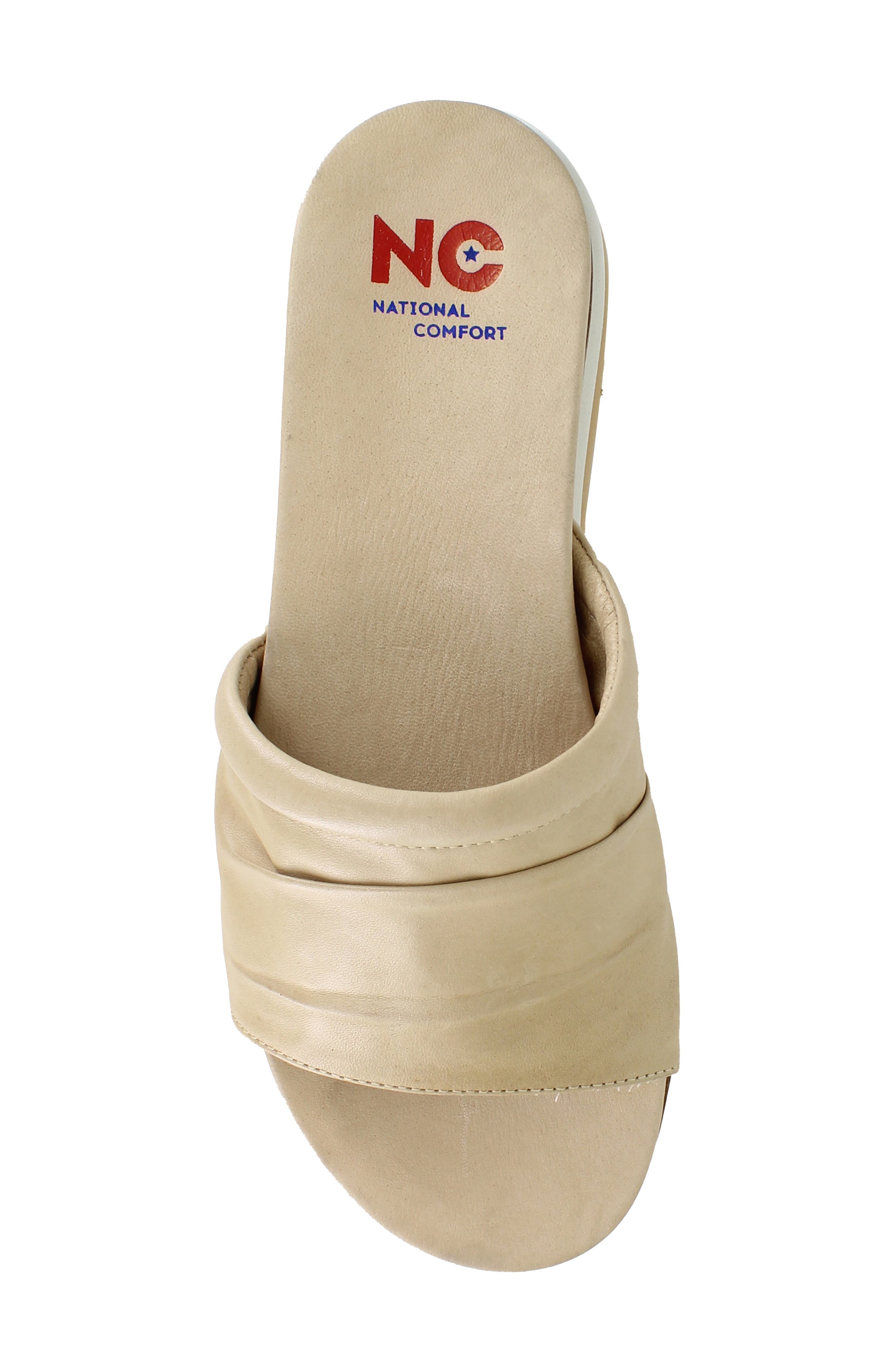 National Comfort Kai Scrunchie Platform Slide Sandal_Tan Leather