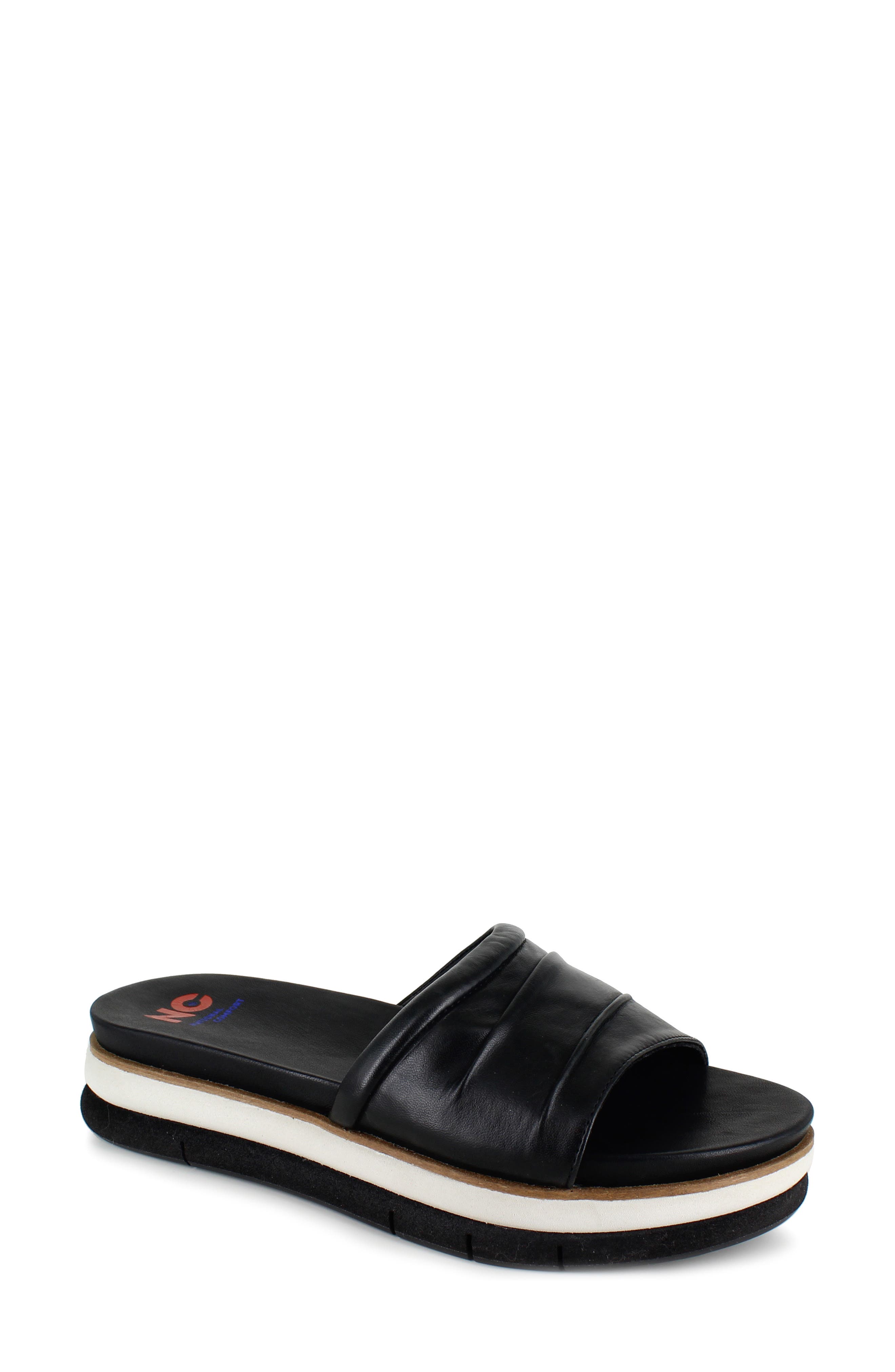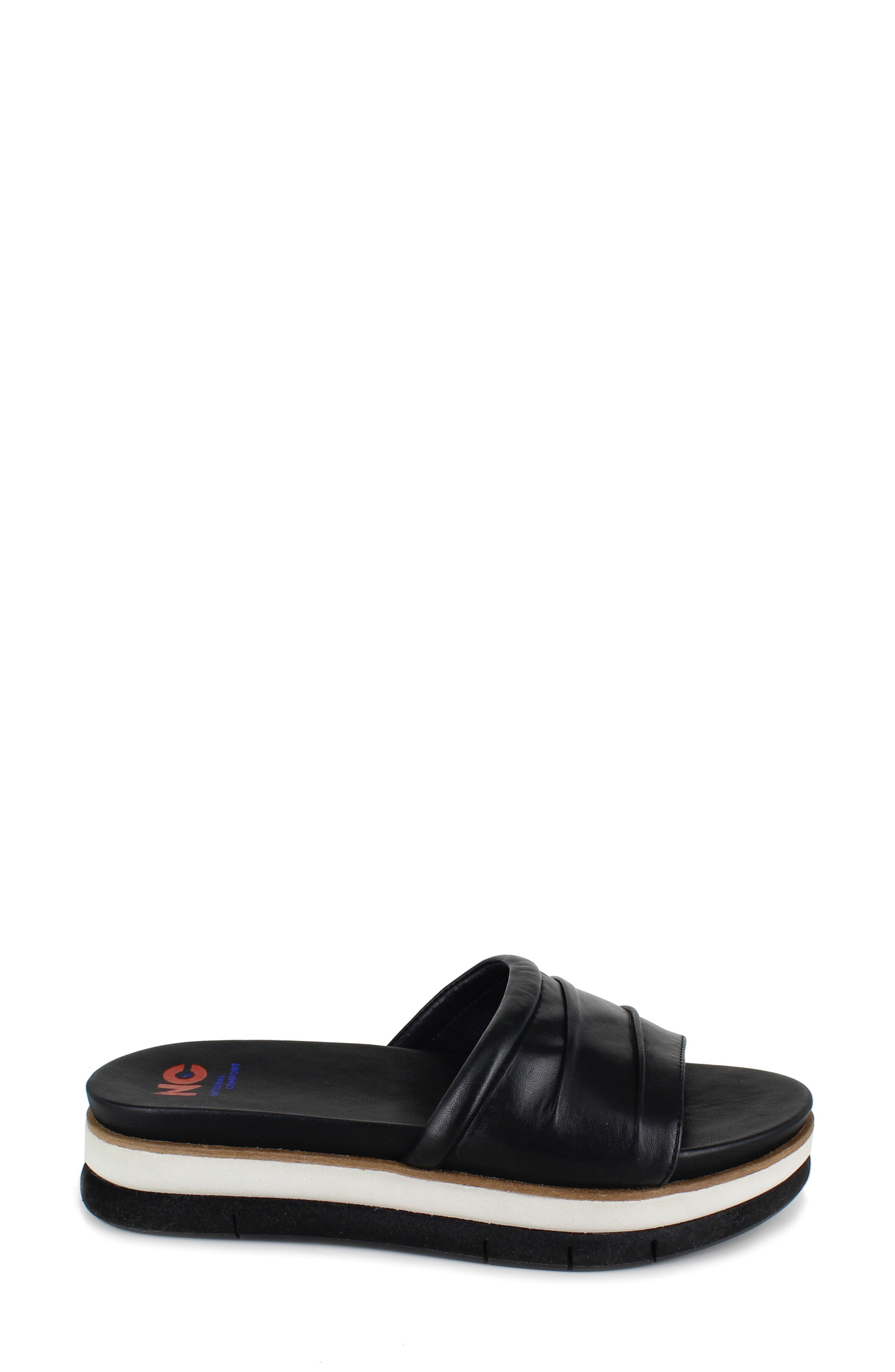 National Comfort Kai Scrunchie Platform Slide Sandal_Black Leather