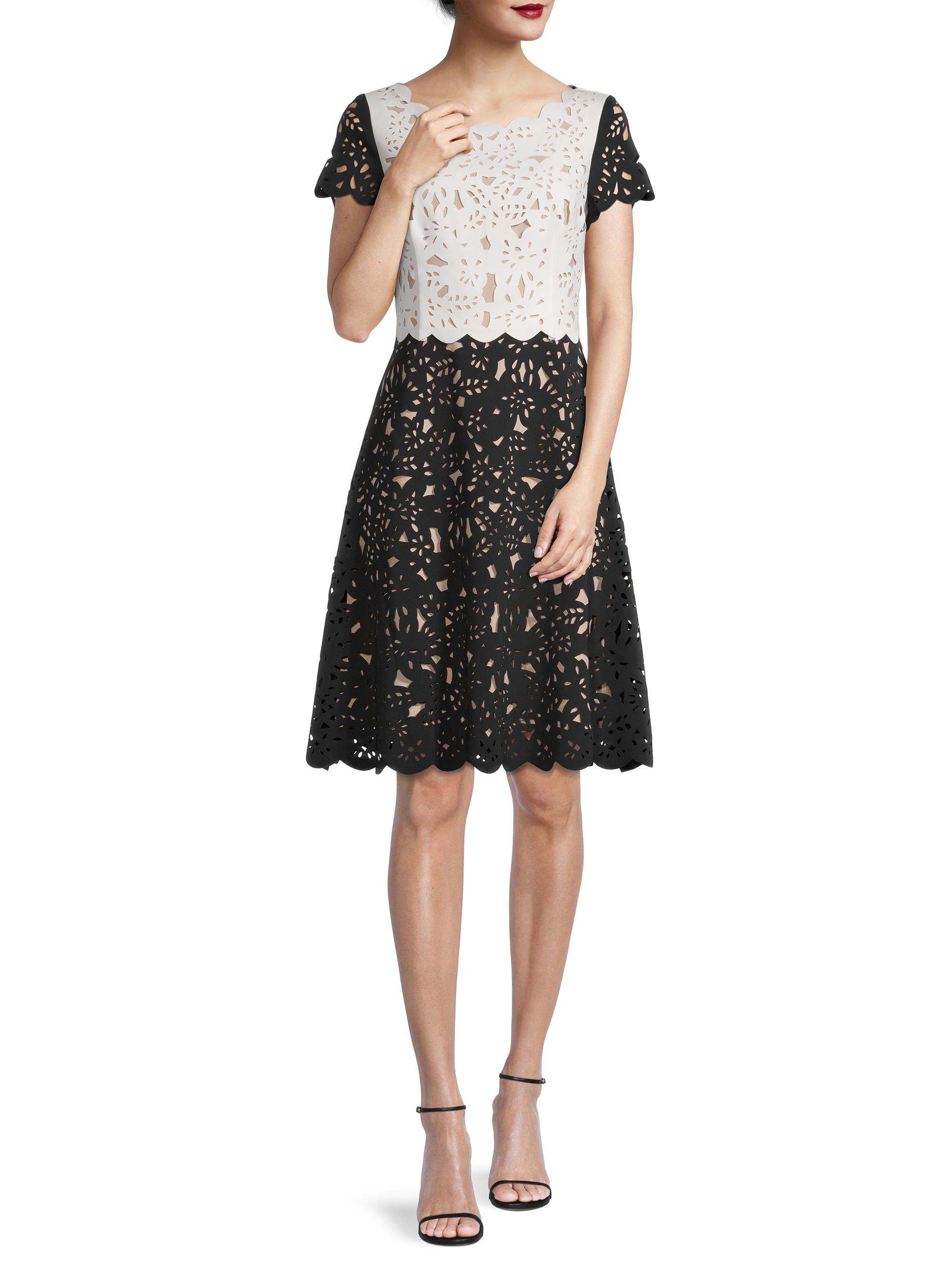 Shani Laser-Cut Two-Tone Dress