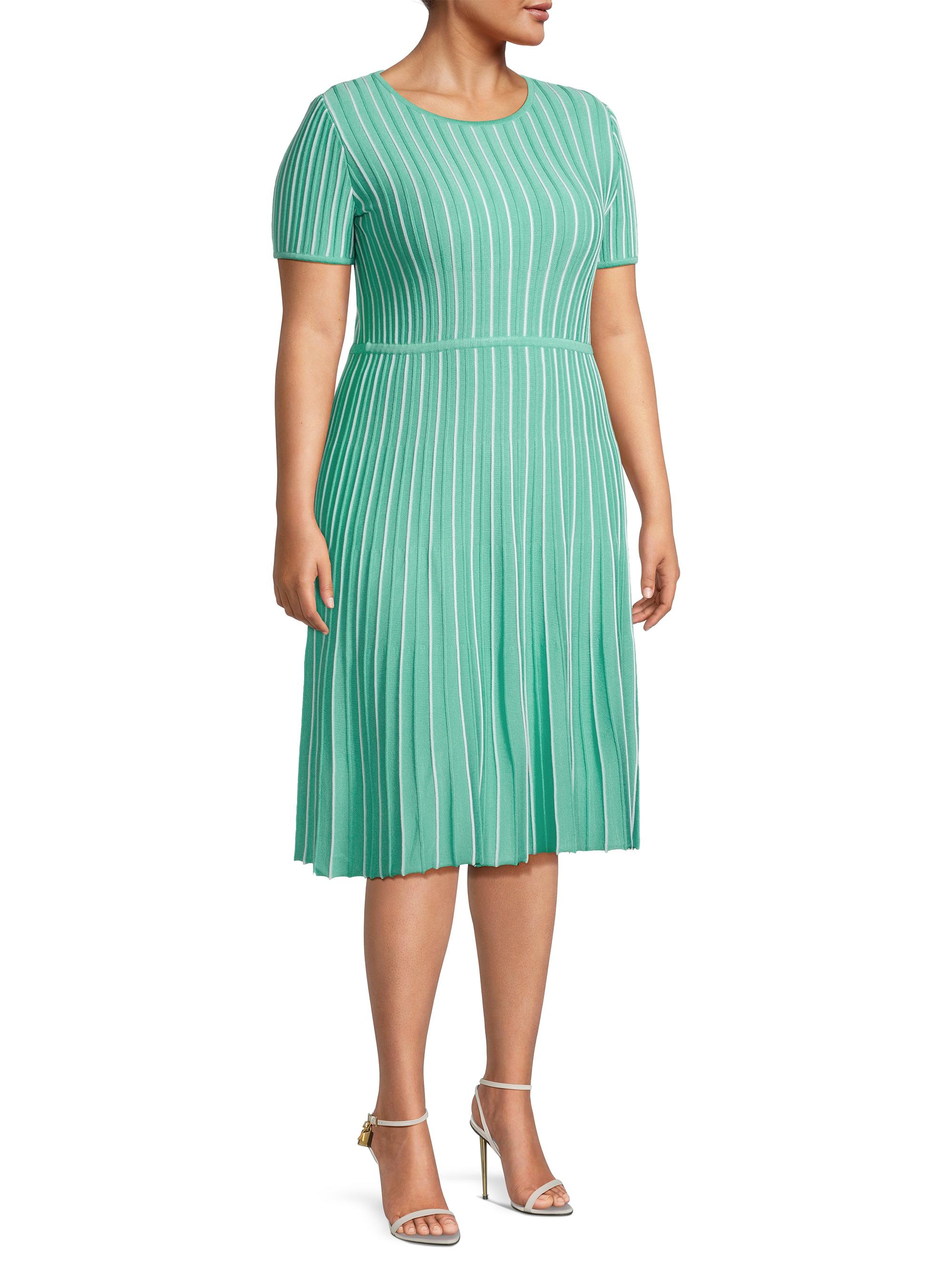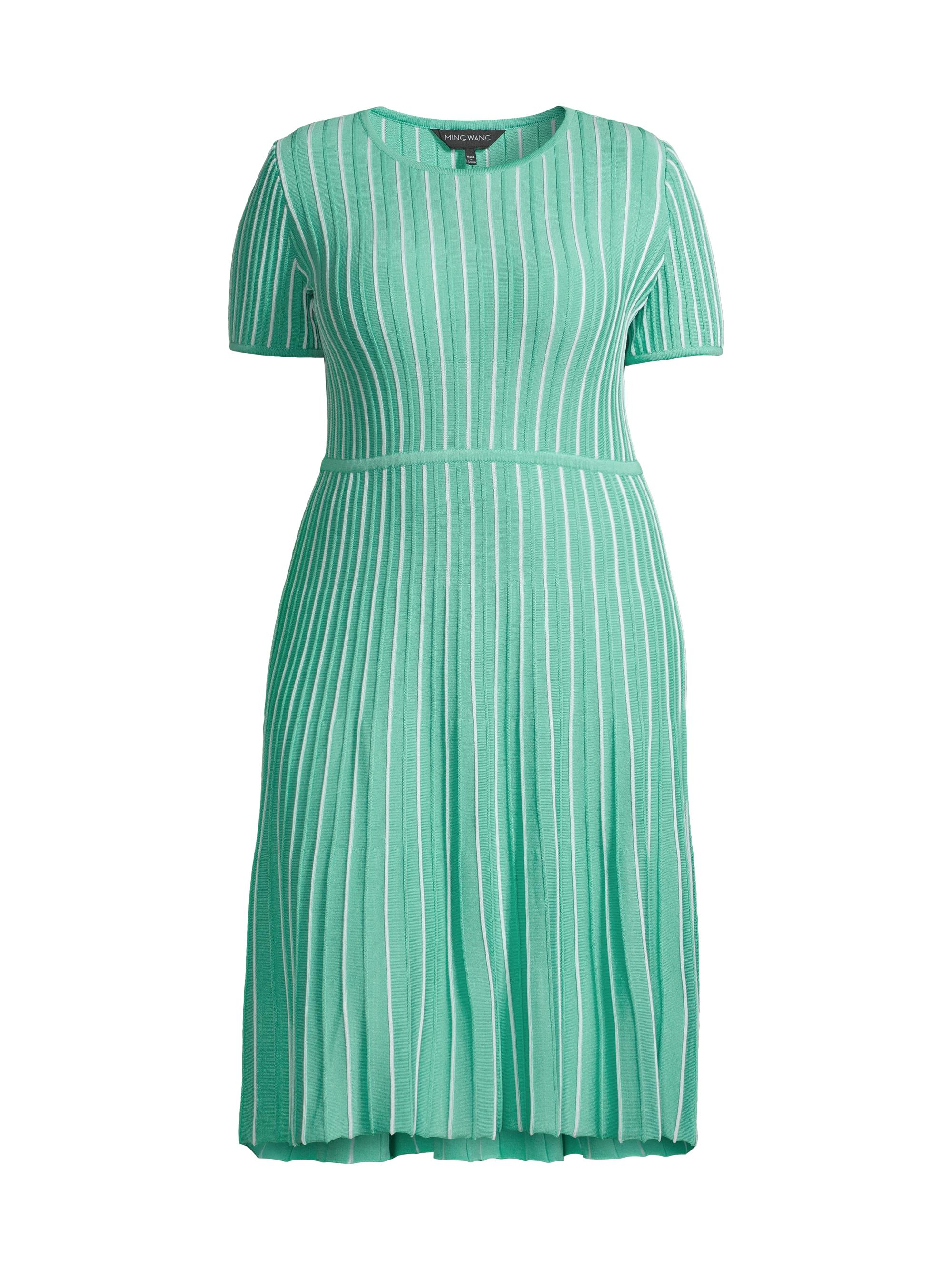 Ming Wang, Plus Size Striped Knit Midi-Dress